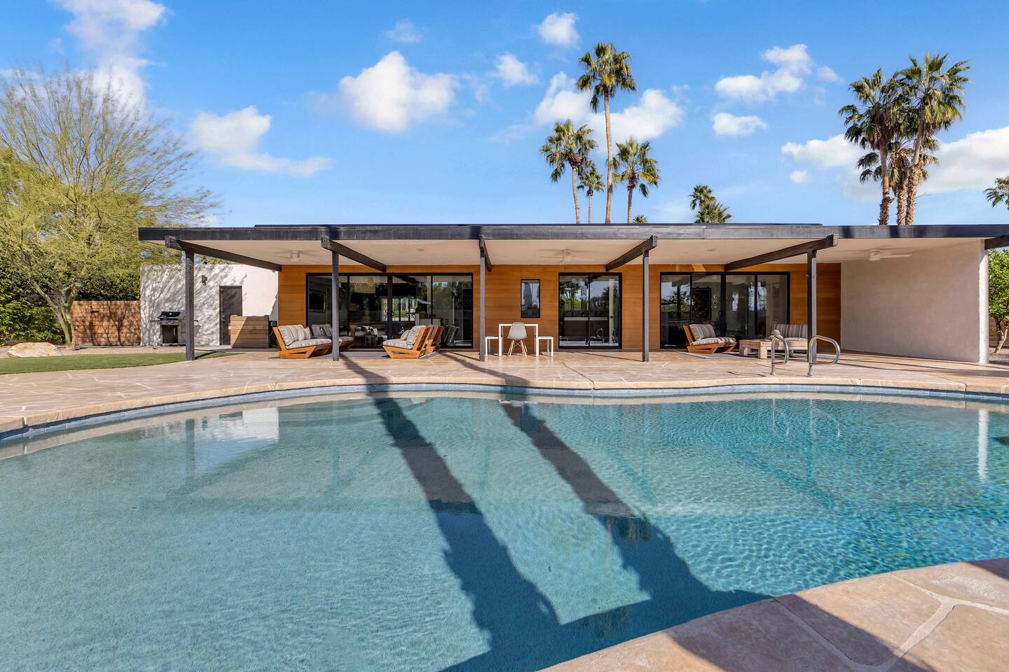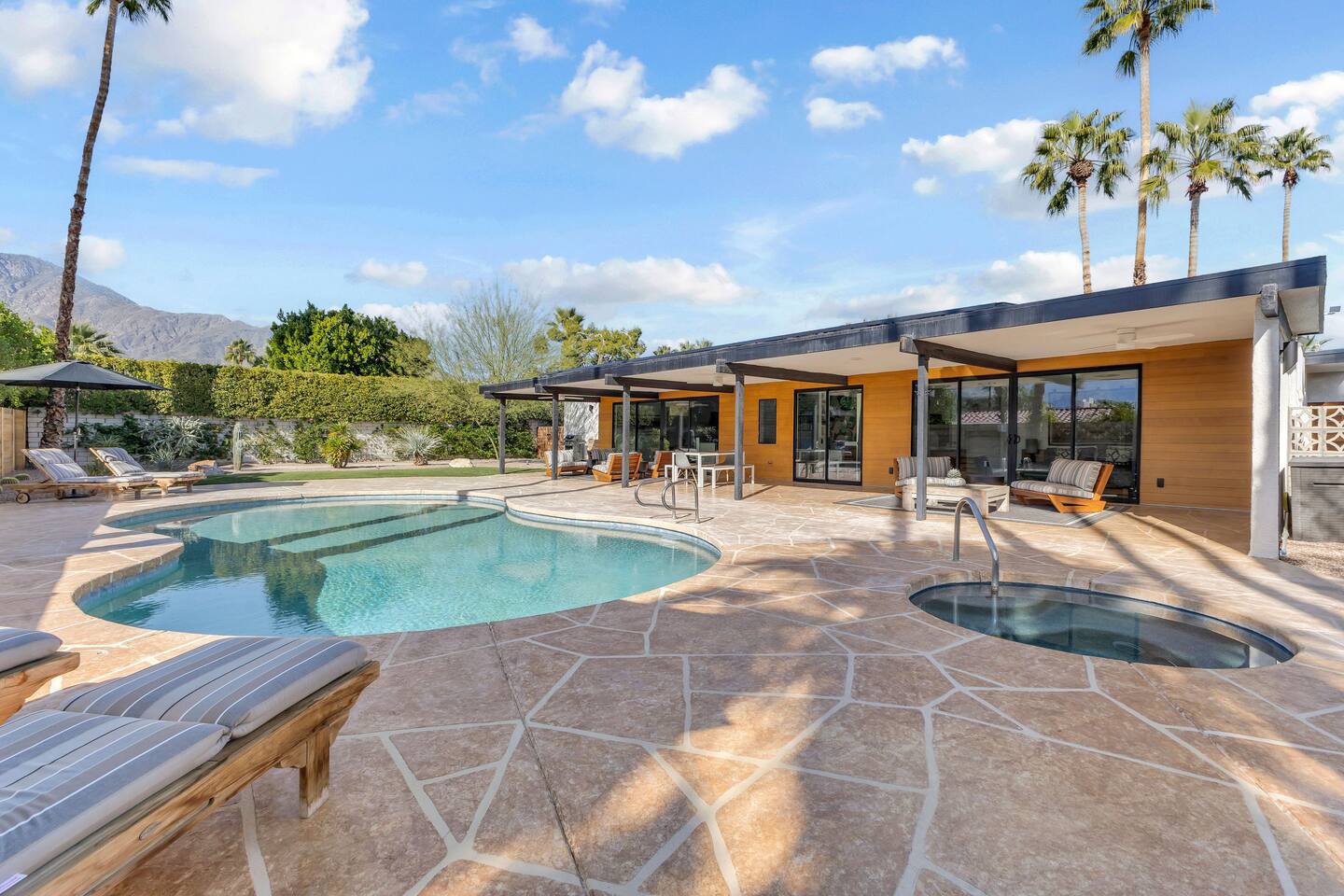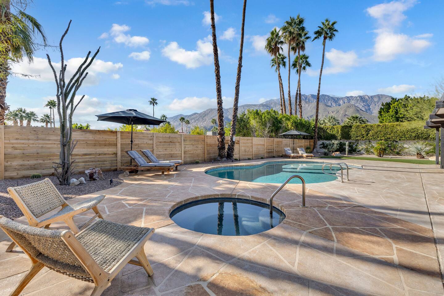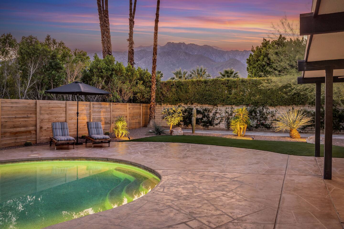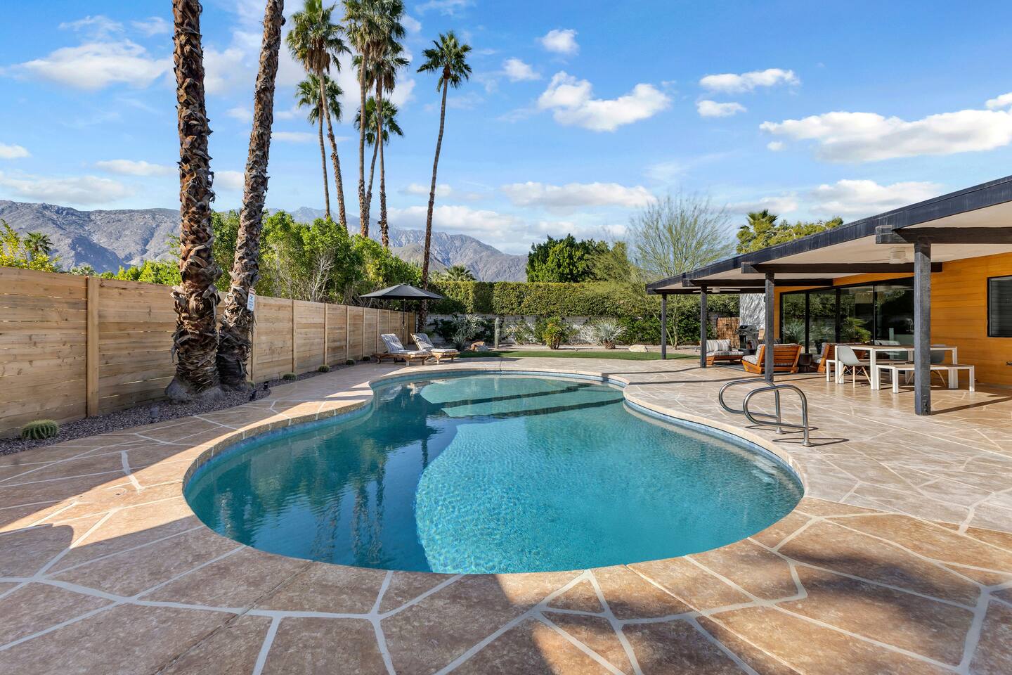 # 069140 Relax, recharge, and take in stunning mountain views in a 3-bedroom, 2-bath home in the heart of Palm Springs. Designed for comfort and connection, this desert retreat offers an inviting pool, spa, outdoor BBQ, and total privacy. Wake up to breathtaking views of Mt. San Jacinto, lounge poolside with coffee, or enjoy dinner under the stars in the backyard oasis. Inside, you’ll find Spanish modern touches, an open living space, and large sliding glass doors that bring the outdoors in.