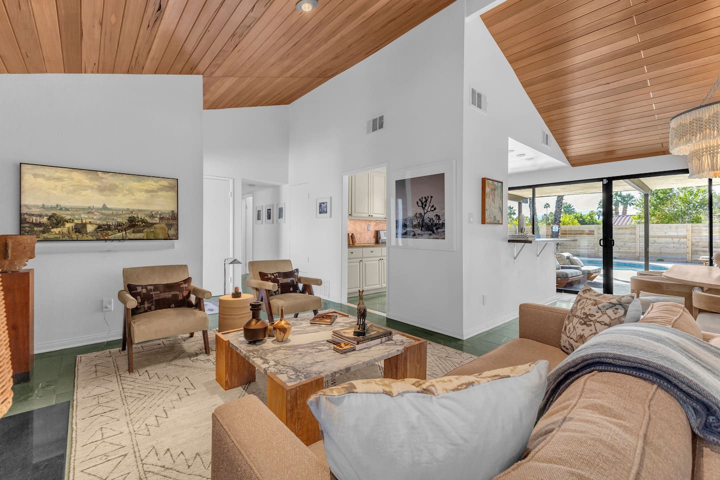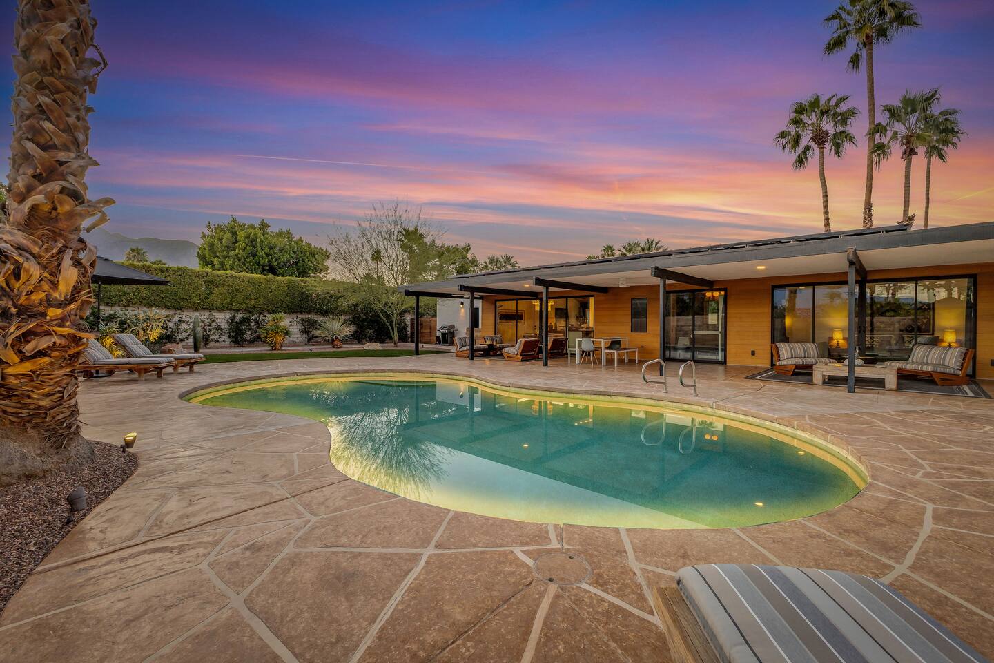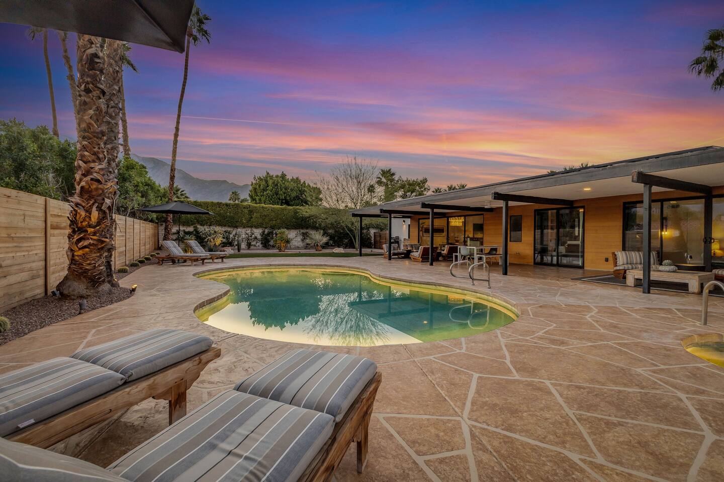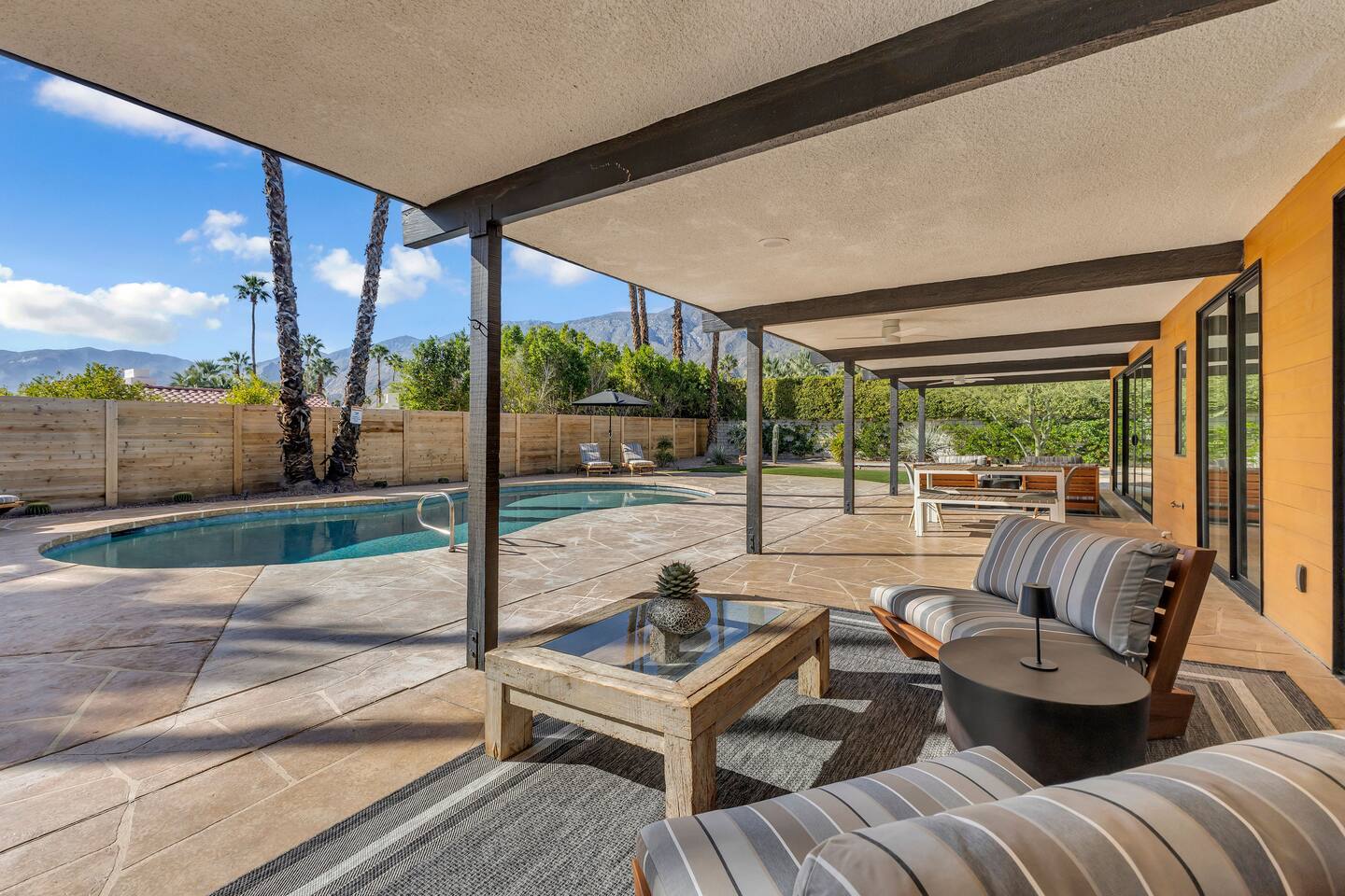 # 069140 Relax, recharge, and take in stunning mountain views in a 3-bedroom, 2-bath home in the heart of Palm Springs. Designed for comfort and connection, this desert retreat offers an inviting pool, spa, outdoor BBQ, and total privacy. Wake up to breathtaking views of Mt. San Jacinto, lounge poolside with coffee, or enjoy dinner under the stars in the backyard oasis. Inside, you’ll find Spanish modern touches, an open living space, and large sliding glass doors that bring the outdoors in.