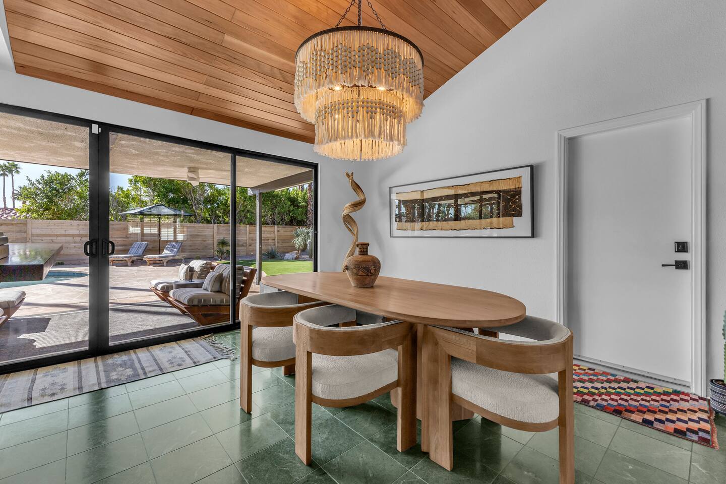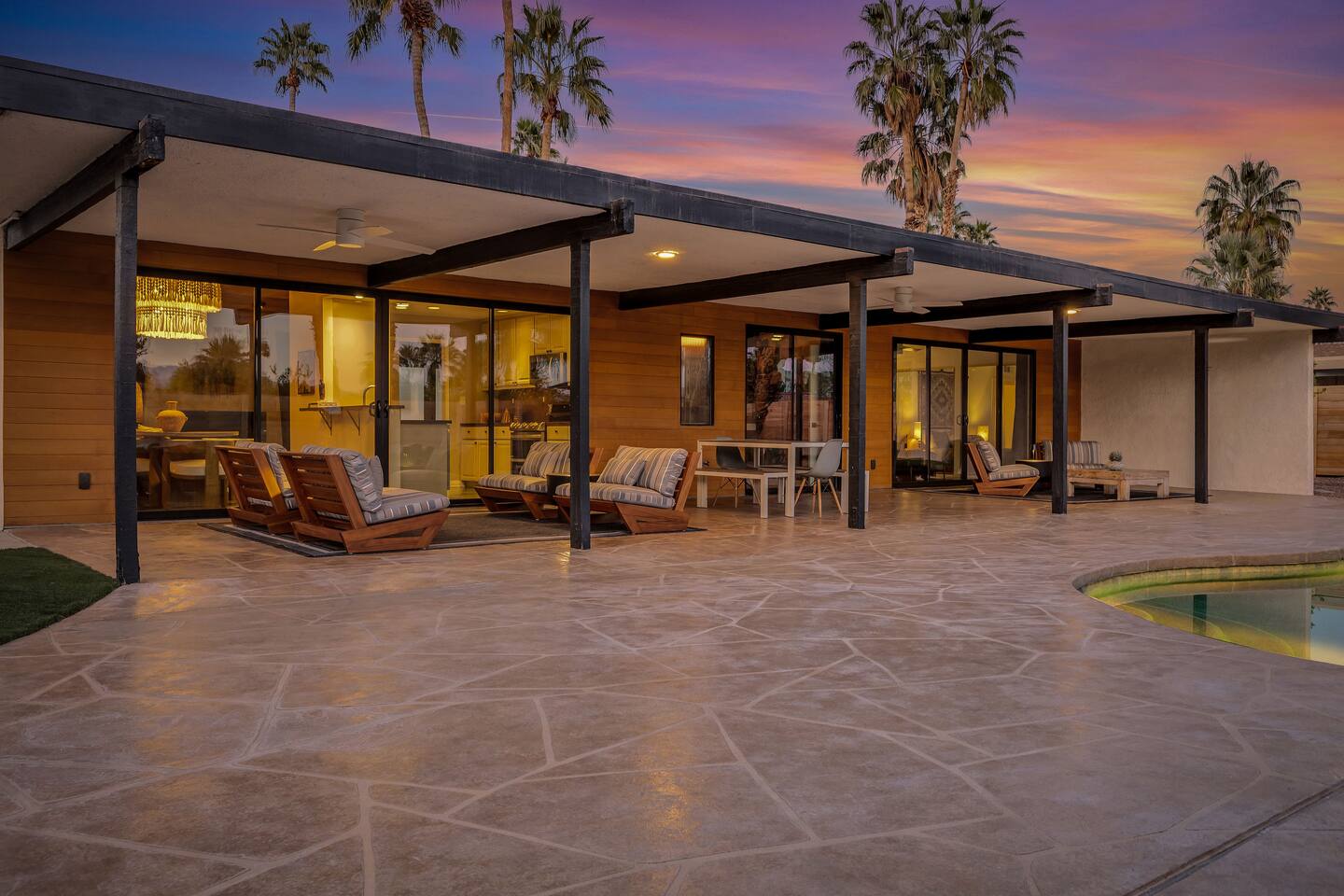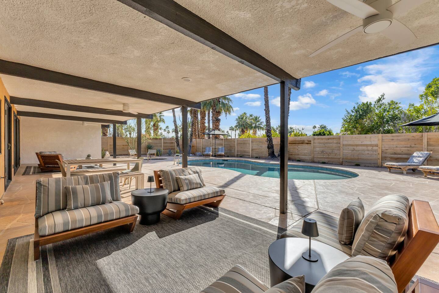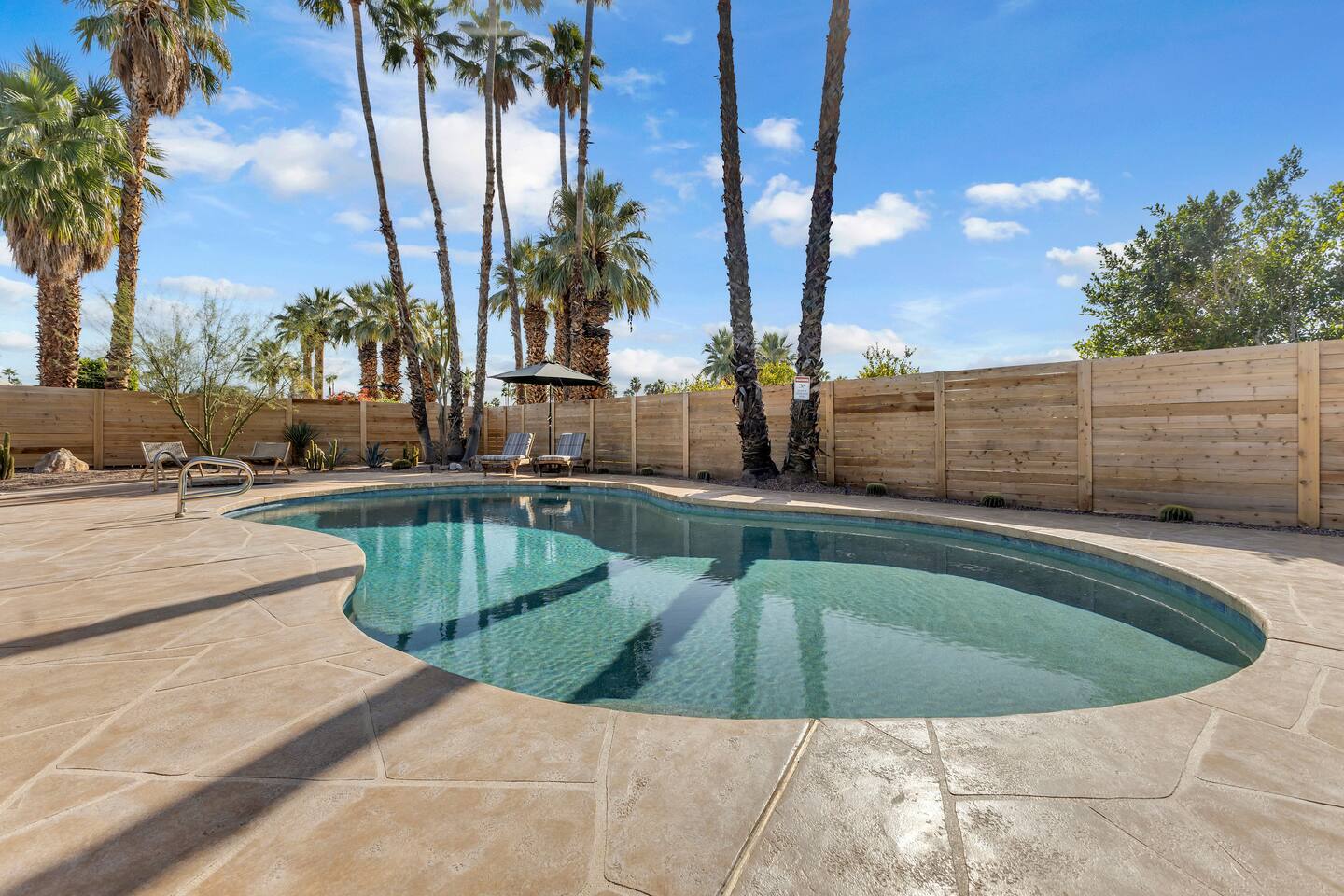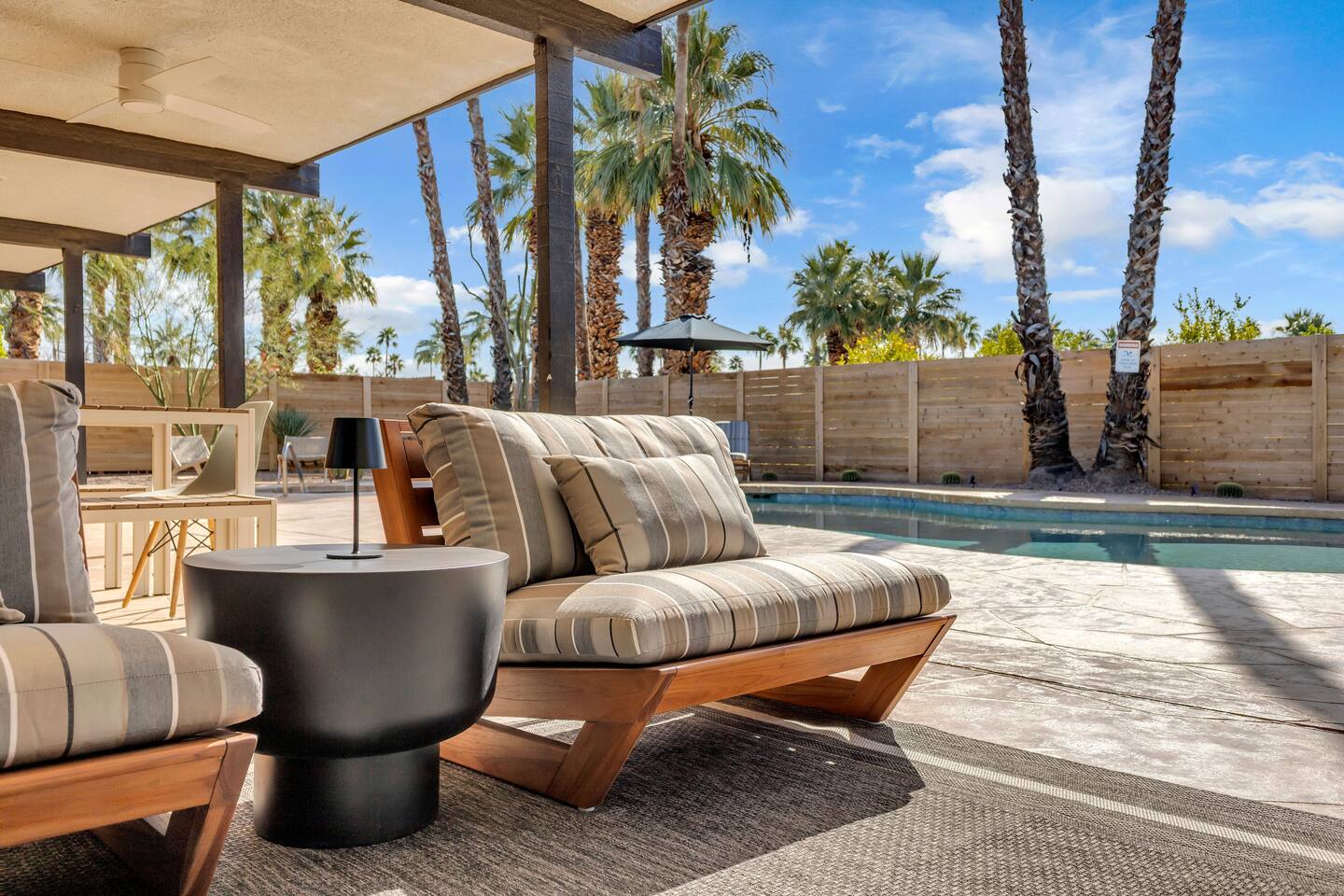 # 069140 Relax, recharge, and take in stunning mountain views in a 3-bedroom, 2-bath home in the heart of Palm Springs. Designed for comfort and connection, this desert retreat offers an inviting pool, spa, outdoor BBQ, and total privacy. Wake up to breathtaking views of Mt. San Jacinto, lounge poolside with coffee, or enjoy dinner under the stars in the backyard oasis. Inside, you’ll find Spanish modern touches, an open living space, and large sliding glass doors that bring the outdoors in.