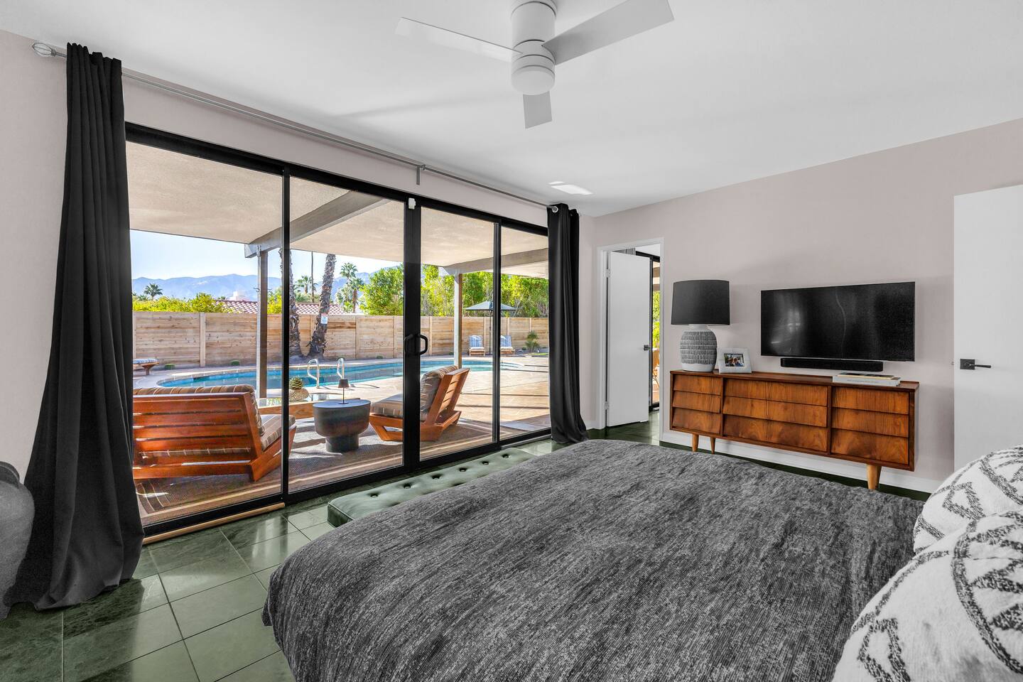 Welcome to Mountain Vista, a stylish 3-bedroom, 2-bath retreat in sunny Palm Springs. This home was designed for effortless indoor-outdoor living, with large sliders opening to a private backyard oasis complete with a pool, spa, BBQ, and stunning mountain views. The primary suite features a king bed and direct pool access, while the guest rooms include a queen bed and king bed. Inside, the open living area is bright and inviting with Spanish modern touches, a cozy fireplace, and a fully stocked kitchen. Whether you’re lounging poolside, dining under the stars, or unwinding in the spa, Mountain Vista is your place to relax, recharge, and enjoy the beauty of the desert. ✨ Highlights: Private pool + spa with mountain views (heating available for $99 per booked night) Primary: King bed + sliders facing the pool Bedroom 2: Queen bed Bedroom 3: King bed Fully equipped kitchen Bright dining areas Gas BBQ + outdoor dining Fast Wi-Fi + smart TVs Private backyard Just minutes from downtown Palm Springs, Mountain Vista offers a peaceful escape close to dining, golf, and hiking — the perfect blend of privacy and desert charm.