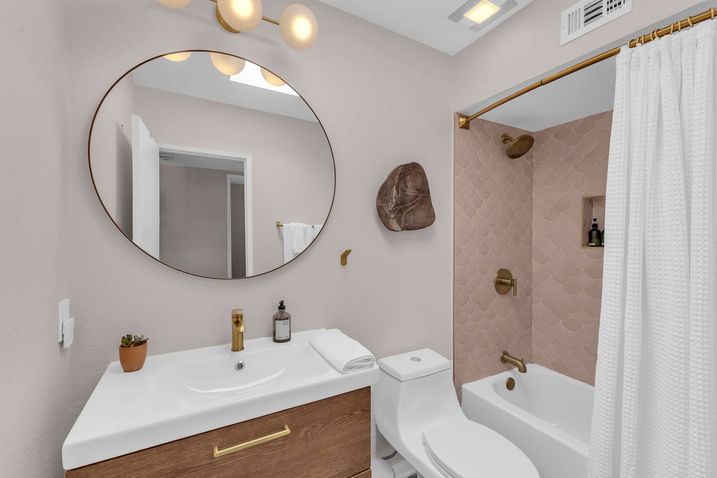 Guests have exclusive access to the entire home, including the private pool, spa, BBQ, and outdoor lounge areas. You’ll have full use of the kitchen, living and dining spaces, and all three bedrooms and two bathrooms. The home also includes a washer and dryer for guest convenience and private driveway parking (no garage access).