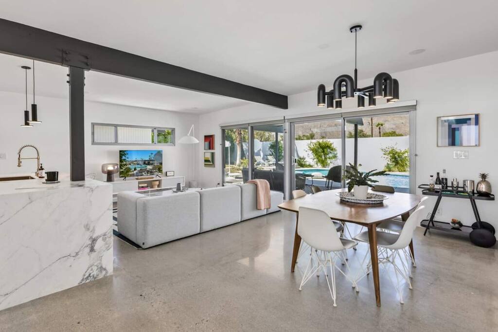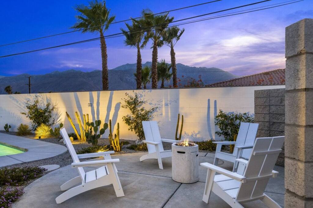 City ID 1858, TOT 9182 About our home- 3 bedroom, 2 bathroom home in a quiet neighborhood Thoughtfully designed and fully remodeled, this home exudes the Modern West lifestyle of Palm Springs Stylish and unique amenities including a resort-style backyard surrounded by privacy - Gorgeous views of the San Jacinto Mountains Walking distance from Starbucks, restaurants and grocery store - Convenient location just minutes away from the best dining & entertainment in Palm Springs Minutes from downtown Palm Springs the neighborhood is clean, quiet, and conveniently located just two blocks from Victoria Park (great for the kids!) and less than five minutes drive from Downtown Palm Springs and Agua Caliente Casino. BEDROOMS & BATHROOMS - 3 large bedrooms with new Casper mattresses and West Elm linens; 1 king, 2 queens - 2 bathrooms with large vanities, modern fixtures and spacious walk-in showers - Lots of closet space, new high speed fans and KITCHEN & DINING AREAS - Fully-equipped kitchen with full-sized cooking appliances -Indoor and outdoor dining options -French press, Espresso and Keurig coffee options Built for entertainers, the kitchen and dining spaces are open and easy for the desert lifestyle. For indoor dining, the new Italian porcelain countertops and Bertoia bar stools at the counter are perfect for coffee and apps. The Room and Board dining table & Eames dinning chairs are perfect for a more formal meal. For brunch or sunset happy hour check out the outdoor long dining table with views of the San Jacinto mountains or enjoy the loungy couch and chairs. LIVING ROOM - Smart TV with digital surround sound and Apple TV - Family games, puzzles, and other activities While you may not be spending a whole lot of time indoors during your stay in Palm Springs, when you do need a break from the sun, the cozy living room is the perfect place to relax and unwind. It features a large sectional couch, shades to cool you off and plenty of fun activities including puzzles, books and games. BACKYARD & OUTDOOR SPACE - Beautiful heated pool with floats included (pool heat is available for daily fee based on season) Outdoor shower Gas firepit and Adirondack chairs Luxurious modern outdoor furniture throughout the backyard Natural gas BBQ grill Outdoor dining area with the best views during dinner The spacious and secluded backyard area is where you’ll want to spend most of your time. Start your day with a book under the palm tree or a morning swim and end it under the gorgeous sky lounging near the fire pit. Pool heat is available for a fee per day. Please ask us if interested. A Note from the owners: A personal note from Monika and Jay, the owners of the home. We have been drawn to Palm Springs for as long as we can remember and were finally able to find a property we loved to own. We are fascinated by the classic Mid Century modern design feel with hints of old Hollywood all throughout Palm Springs. We wanted to maintain the architectural integrity of the renowned Hugh Kaptur design but bring in some simple modern elements that allow us to relax and decompress into the desert landscape. We hope you enjoy the home as much as we do with those you love! The pool and yard are our favorite place in the home. Watching the sunset with friends on the outdoor couch with a fresh cocktail is one of our favorite places to be, and hope you do the same!