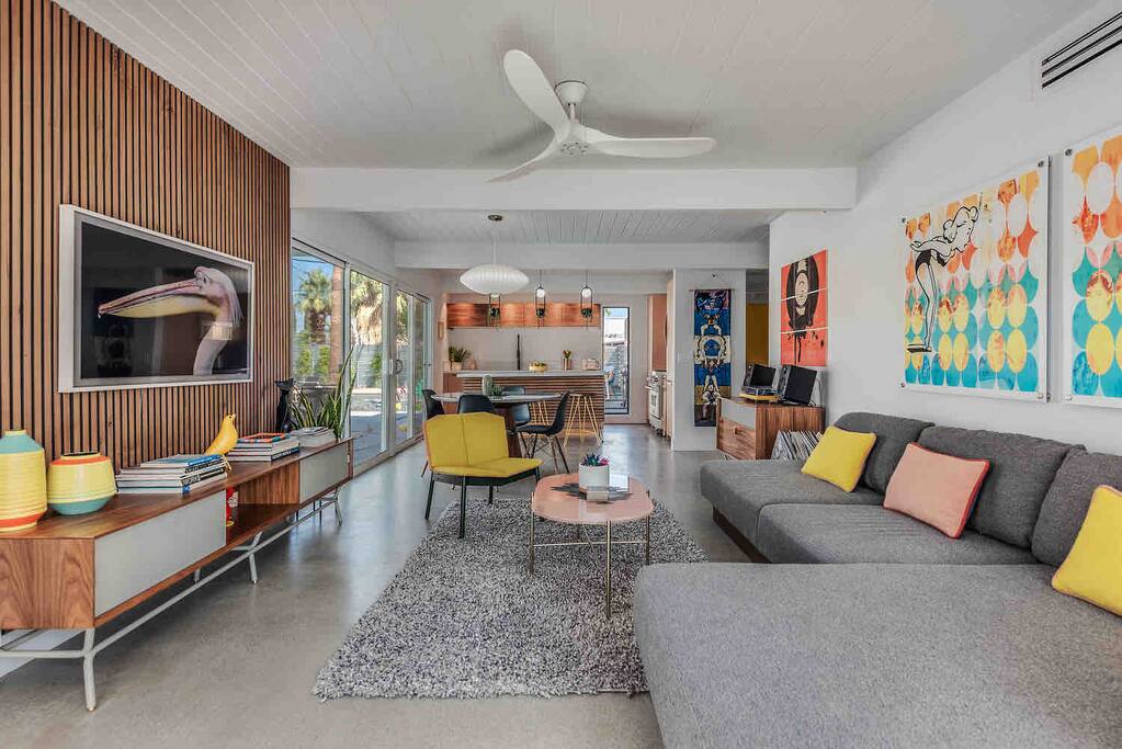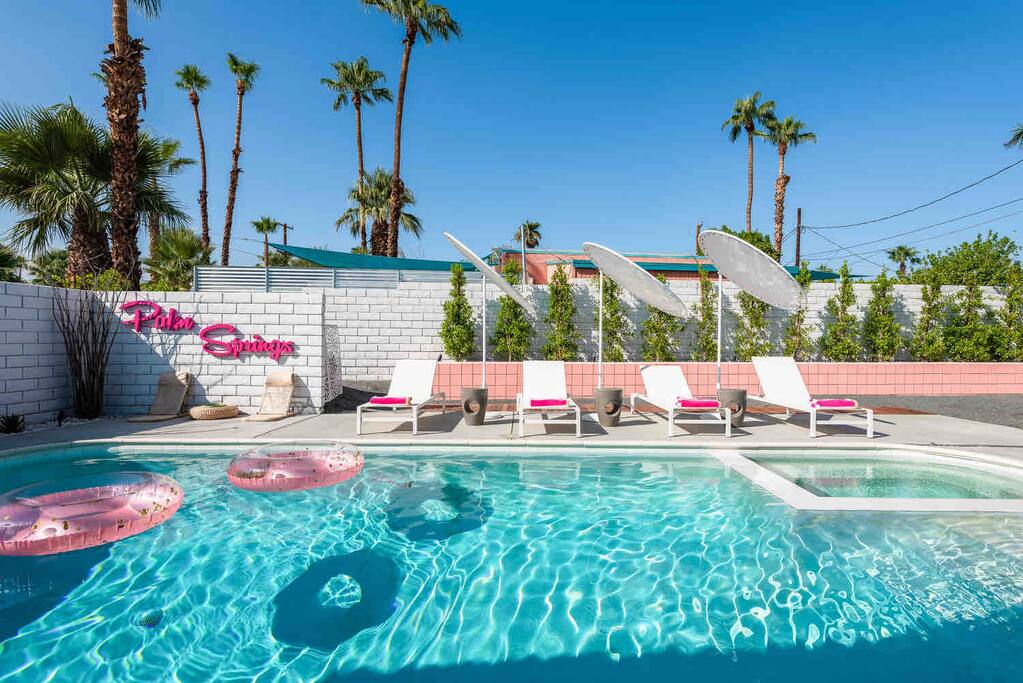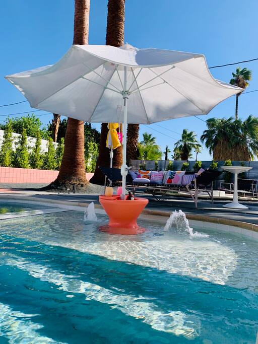 Designed by architects William Krisel and Dan Palmer and built by the Alexander Company in 1959, the home is set in the historic Racquet Club Estates neighborhood, surrounded by other vintage Alexander homes, in a quiet and clean residential area. Victoria Park, perfect for children, is two blocks away. Downtown Palm Springs and the Agua Caliente Casino are less than a five-minute drive away. Highlights include vintage/designer furniture throughout the interior and exterior, terrific views of the mountains and the tram from the house and backyard, resort-style yard, washer/dryer and a garage. Brand-new AC unit that blows cold and strong. Master bedroom has a king bed and it’s own private courtyard and private bathroom with step-in shower. Second bedroom has a king bed with access to shared courtyard. Third bedroom has a queen bed with access to shared courtyard. All bedrooms come with linen/cotton robes, yoga mats and extra towels inside their closet. We use premium Brooklinen cotton percale bedding and feature Casper mattresses and pillows in each bedroom Main guest bathroom has double vanity sinks and a large shower. Ceiling fans, night lights and phone chargers in every room. Smart TVs in every room so you can access your own streaming services in a flash. We have Disney Plus for you! A gourmet retro kitchen with everything you need to enjoy dining in or dining al fresco. There are five dining options around the house. Inside, enjoy a lovely meal around a round, marble-top table with authentic Charles and Ray Eames dining chairs by Henry Miller, or opt out for casual dining around the original kitchen island that was built in 1959. In the yard, enjoy a bistro-style meal under the covered awning or go all out for a big meal on our spacious concrete dining table that can seat 10 -12 guests. There is another bistro-style table in the front courtyard. A Roy Lichtenstein inspired wet bar with high-capacity ice maker, beverage/wine cooler and vintage 1960’s smoke grey glasses. We love good coffee and hope you do too. We are proud owners of a Jura automatic espresso/coffee maker that freshly grinds beans for every delicious cup. We also have various tea options and decaf coffee on hand. There is also an electric kettle and French press. There is a high-end turntable with external speakers to listen to a collection of our vinyls to add background music to your ambiance. Speakers are Bluetooth ready, so you can easily connect your own device. Because of the city’s strict rules on loud music played in vacation homes, we do not have built-in speakers outside in the yard. We have a credenza filled with games (poker, backgammon), activities and puzzles. The unique concrete table doubles as a ping-pong/outdoor dining table combo for those bbq dinners or sporting challenges. We also have a newly built Bocce ball court with scorekeeper. You can also play other lawn games such as Bottle Bash and Cornhole on the court as well. For BBQing, we offer a WEBER natural gas grill as well as a small charcoal grill that is primarily used for kebabs and other skewered bbq. Enjoy our fully-renovated 8' deep saltwater swimming pool complete with built-in jacuzzi spa, tanning ledge, and bubblers with LED light show. We have fun pool floats, noodles and an electric air pump. Pool heating is $75 a day (must heat every day of your stay and we need at least one days notice). We do not heat pool May-September. Spa heating and fire pit usage are included in the cost of the rental. We have a brand-new patio awning spanning the length of the house to provide shade and protection from the elements. We also have sun loungers and a daybed for soaking up the desert sun and a hot/cold outdoor shower to rinse off before and after pool time. We have a yoga/meditation exercise deck for those of you that need your sun salutations in the desert. Enjoy walking through the front breezeway of the house where you can admire various cacti and desert plants in our breezeway garden. Just don’t get too close…cacti have prickly personalities. There’s no reason to leave once you arrive. However, we have lots of suggestions for you in our house manual for dining out, going shopping and enjoying excursions throughout the Coachella valley. This is our home away from home. We are very selective with who we think will be a good fit for renting our property; this is why we don’t allow instant booking. For starters, the home is surrounded by full-time neighbors who love and care for our neighborhood. So this is not a party house. Our neighborhood is quiet and serene. We love guests who will care for our home and belongings the same way you care for your home. We have painstakingly poured our hearts and resources into every square inch of this house. We want you to unwind, let go and fully enjoy your vacation here. We just expect our guests to be thoughtful and mindful about caring for the space, whether you’re staying for a couple of nights or for several weeks. Please note that the City of Palm Springs has very strict vacation rental guidelines. These guidelines are set to help balance the needs of the local community as well as the needs of the vibrant tourist culture that our city thrives on. Some guidelines are no loud music that can be heard outside the property line; limited car parking on streets and cars limited to how many bedrooms a vacation home has; neighborhood quiet hours start at 10pm; only two persons per bedroom can stay overnight. Neighbors have a hotline they can call to report vacation rental disturbances to a city compliance officer. We want to avoid this so you don’t get cited with a hefty fine and we don’t get dinged as a problematic vacation rental. Palm Springs city tax of 12.5% is included in the rate sheet. The city also requires an additional written contract which will be sent to you before your arrival. It is a straightforward good-neighbor agreement. We look forward to hearing from you. The City of 