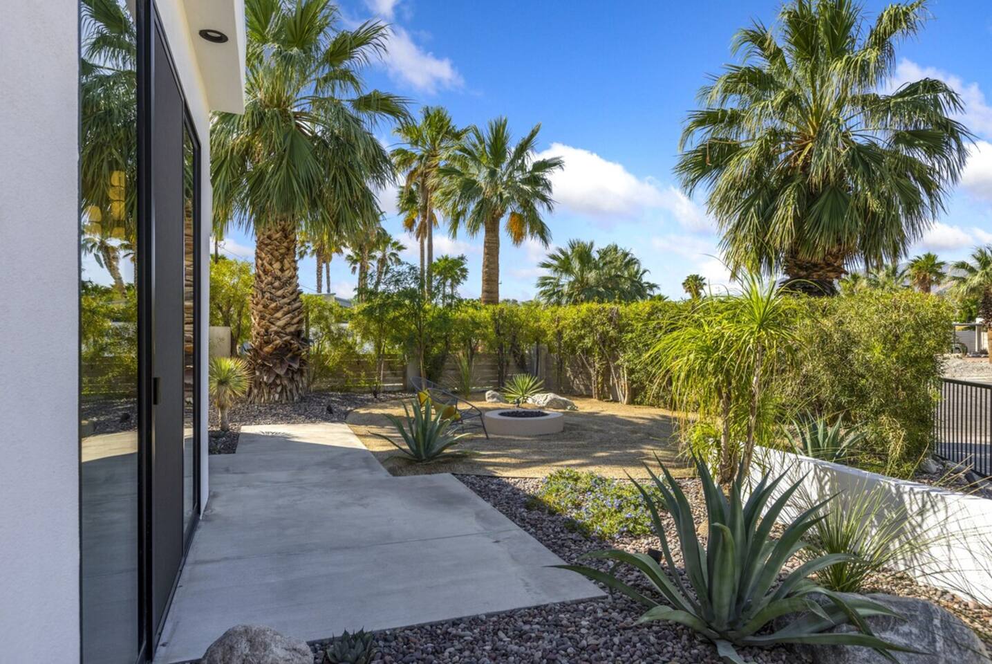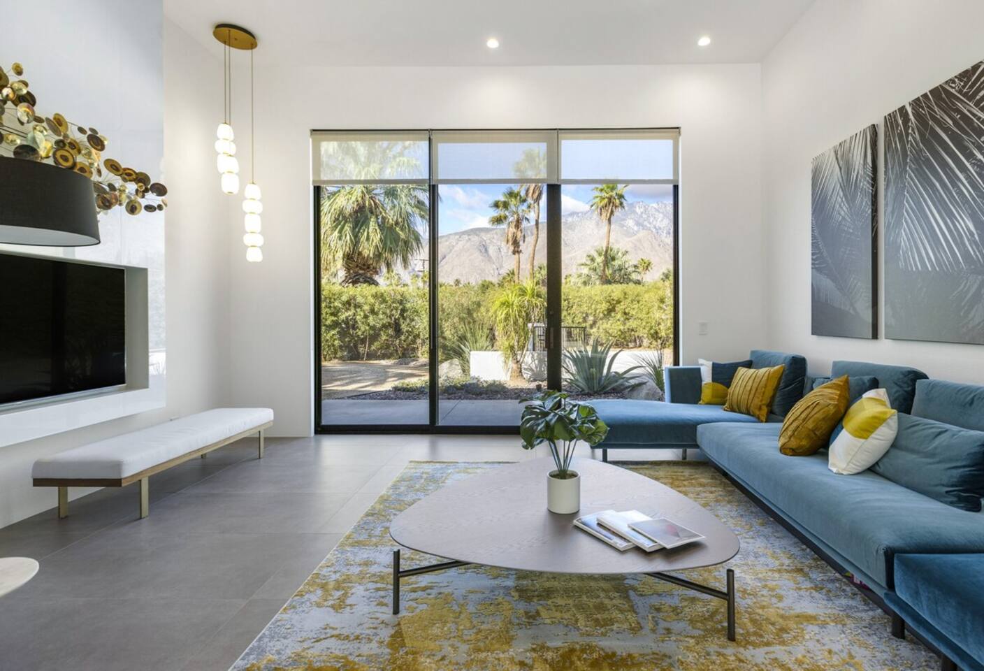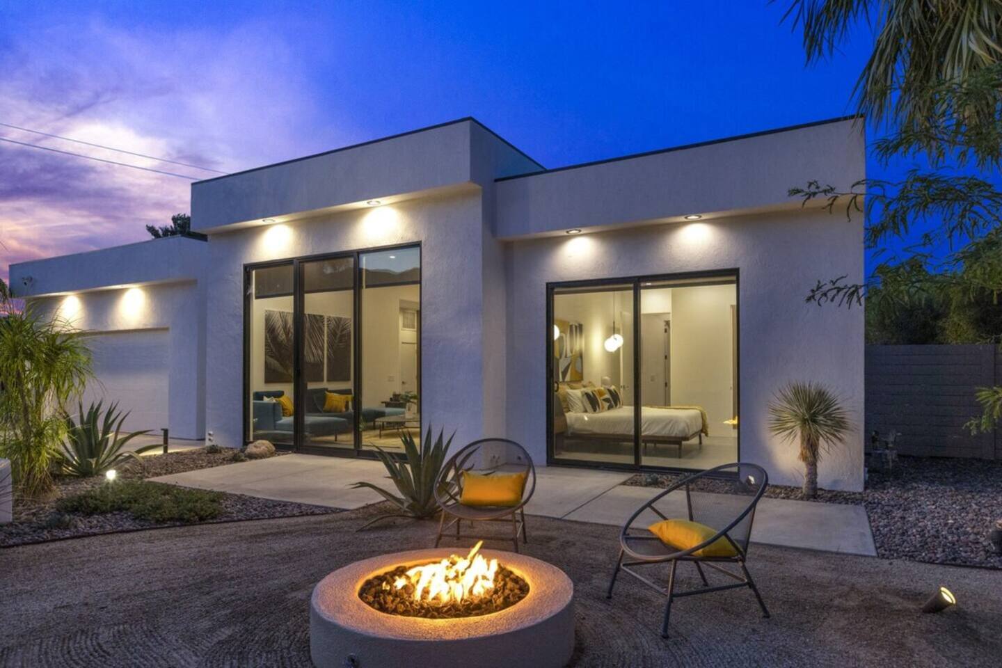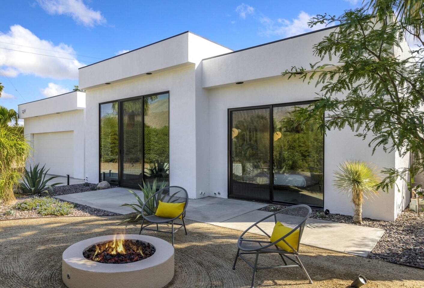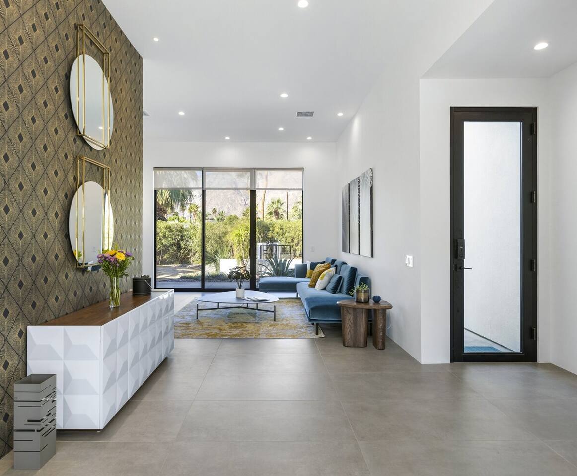 Completely remodeled in 2021, Desert Modern Retreat blends sleek modern design with high-end comfort. Soaring ceilings, brand-new finishes, and curated furnishings set the tone for a luxury stay. Relax in the spacious living room with stunning mountain views, or step into your private backyard oasis with a sparkling pool, spa, firepits, and outdoor dining under the palms. Centrally located in a quiet, well-kept neighborhood just two blocks from Victoria Park, the home is only 5 minutes from downtown Palm Springs’ top dining, shopping, and nightlife. Perfect for couples, friends, or families, with premium amenities and thoughtful touches throughout. Highlights: 2 spacious bedrooms with premium mattresses (Tuft & Needle + Casper), Smart TVs 2 spa-inspired bathrooms with walk-in showers + solid stone soaking tub Chef’s kitchen with new appliances, fully stocked for cooking & entertaining Resort-style backyard: pool, spa (complimentary spa heat, pool heat available), firepits, chaise loungers, covered dining, BBQ grill Fiber internet (1 Gig) + mesh WiFi, desk & chair for remote work Smart TVs in living room + primary bedroom with streaming Attached 2-car garage, washer/dryer, central HVAC Your Palm Springs escape awaits. Licensed Vacation Rental | City of Palm Springs ID#4984