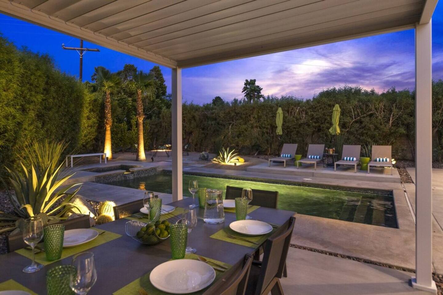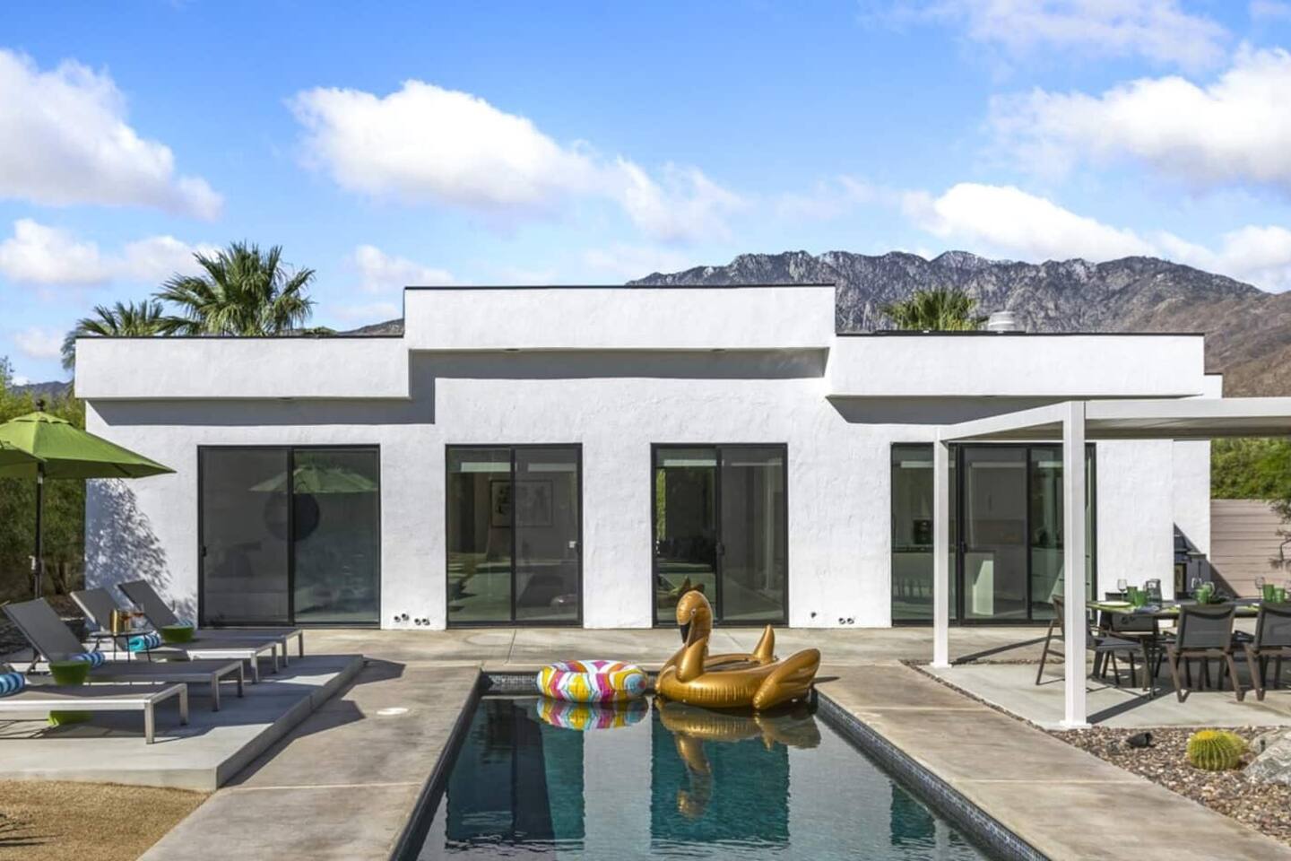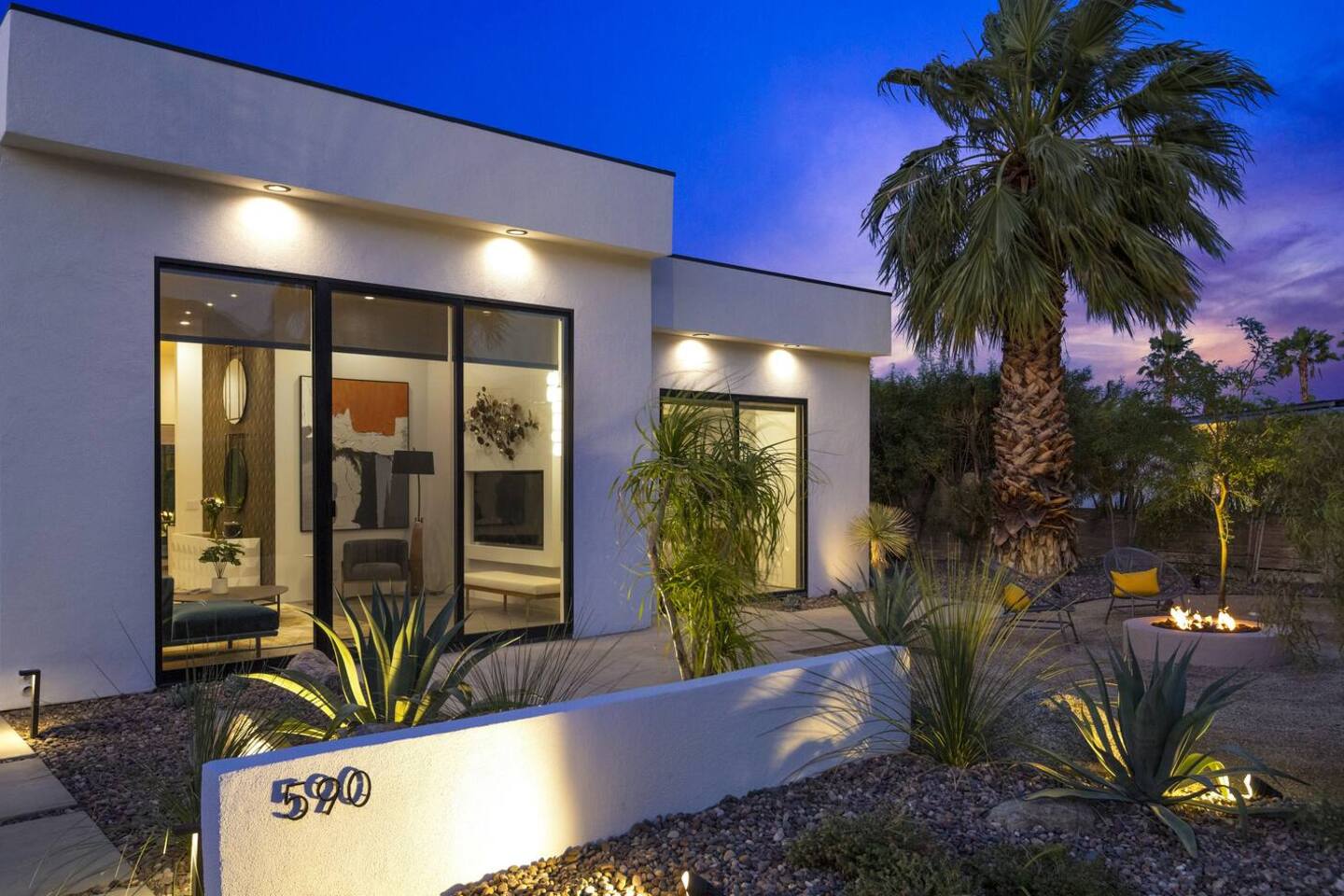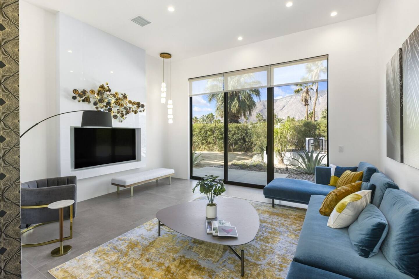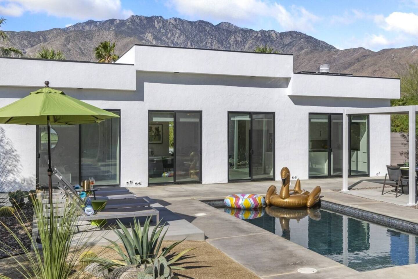 Completely remodeled in 2021, Desert Modern Retreat blends sleek modern design with high-end comfort. Soaring ceilings, brand-new finishes, and curated furnishings set the tone for a luxury stay. Relax in the spacious living room with stunning mountain views, or step into your private backyard oasis with a sparkling pool, spa, firepits, and outdoor dining under the palms. Centrally located in a quiet, well-kept neighborhood just two blocks from Victoria Park, the home is only 5 minutes from downtown Palm Springs’ top dining, shopping, and nightlife. Perfect for couples, friends, or families, with premium amenities and thoughtful touches throughout. Highlights: 2 spacious bedrooms with premium mattresses (Tuft & Needle + Casper), Smart TVs 2 spa-inspired bathrooms with walk-in showers + solid stone soaking tub Chef’s kitchen with new appliances, fully stocked for cooking & entertaining Resort-style backyard: pool, spa (complimentary spa heat, pool heat available), firepits, chaise loungers, covered dining, BBQ grill Fiber internet (1 Gig) + mesh WiFi, desk & chair for remote work Smart TVs in living room + primary bedroom with streaming Attached 2-car garage, washer/dryer, central HVAC Your Palm Springs escape awaits. Licensed Vacation Rental | City of Palm Springs ID#4984
