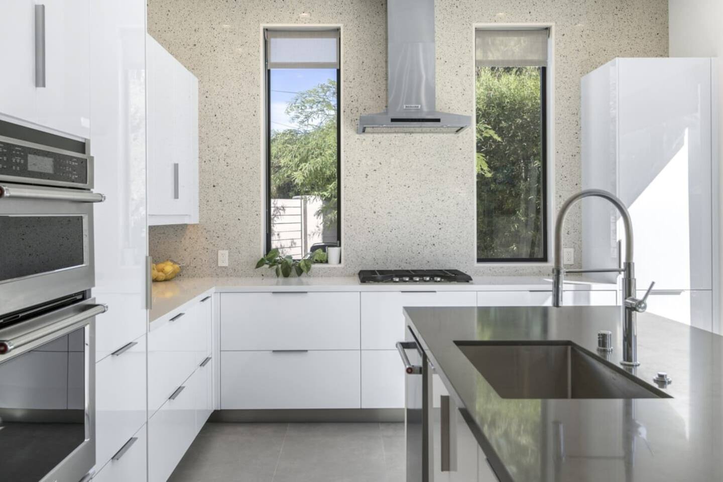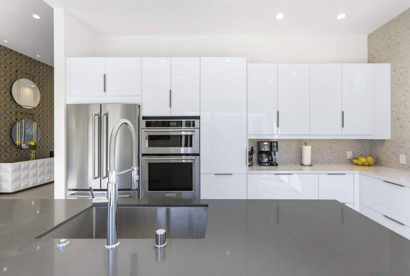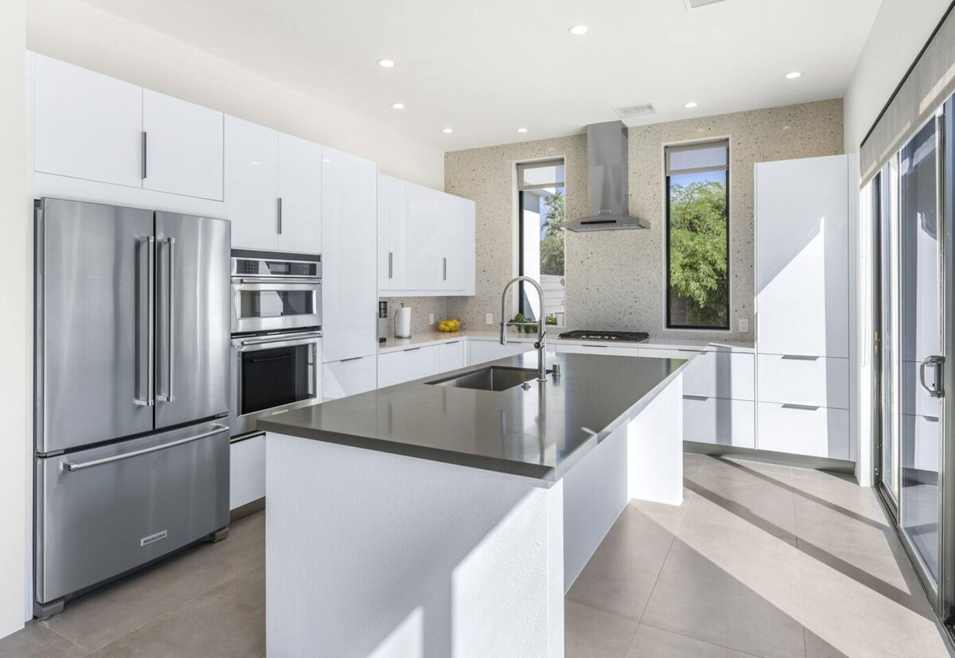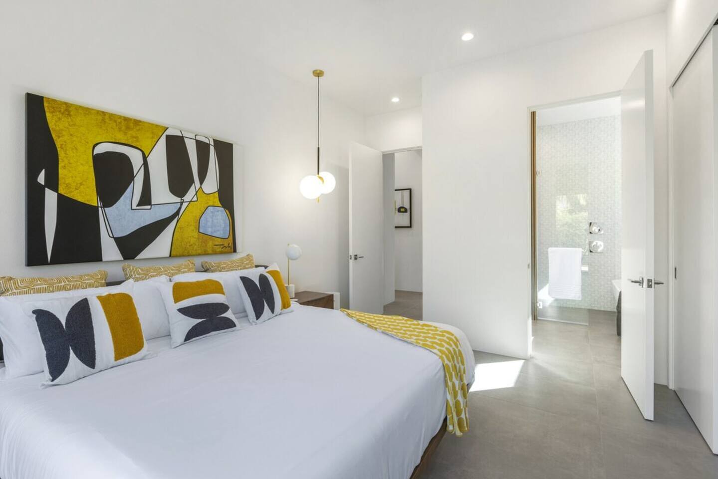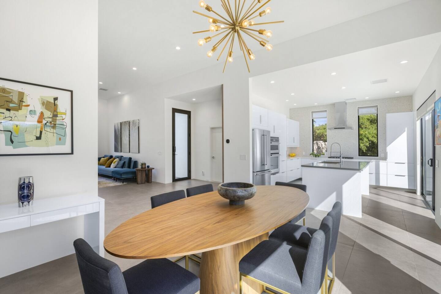 Completely remodeled in 2021, Desert Modern Retreat blends sleek modern design with high-end comfort. Soaring ceilings, brand-new finishes, and curated furnishings set the tone for a luxury stay. Relax in the spacious living room with stunning mountain views, or step into your private backyard oasis with a sparkling pool, spa, firepits, and outdoor dining under the palms. Centrally located in a quiet, well-kept neighborhood just two blocks from Victoria Park, the home is only 5 minutes from downtown Palm Springs’ top dining, shopping, and nightlife. Perfect for couples, friends, or families, with premium amenities and thoughtful touches throughout. Highlights: 2 spacious bedrooms with premium mattresses (Tuft & Needle + Casper), Smart TVs 2 spa-inspired bathrooms with walk-in showers + solid stone soaking tub Chef’s kitchen with new appliances, fully stocked for cooking & entertaining Resort-style backyard: pool, spa (complimentary spa heat, pool heat available), firepits, chaise loungers, covered dining, BBQ grill Fiber internet (1 Gig) + mesh WiFi, desk & chair for remote work Smart TVs in living room + primary bedroom with streaming Attached 2-car garage, washer/dryer, central HVAC Your Palm Springs escape awaits. Licensed Vacation Rental | City of Palm Springs ID#4984