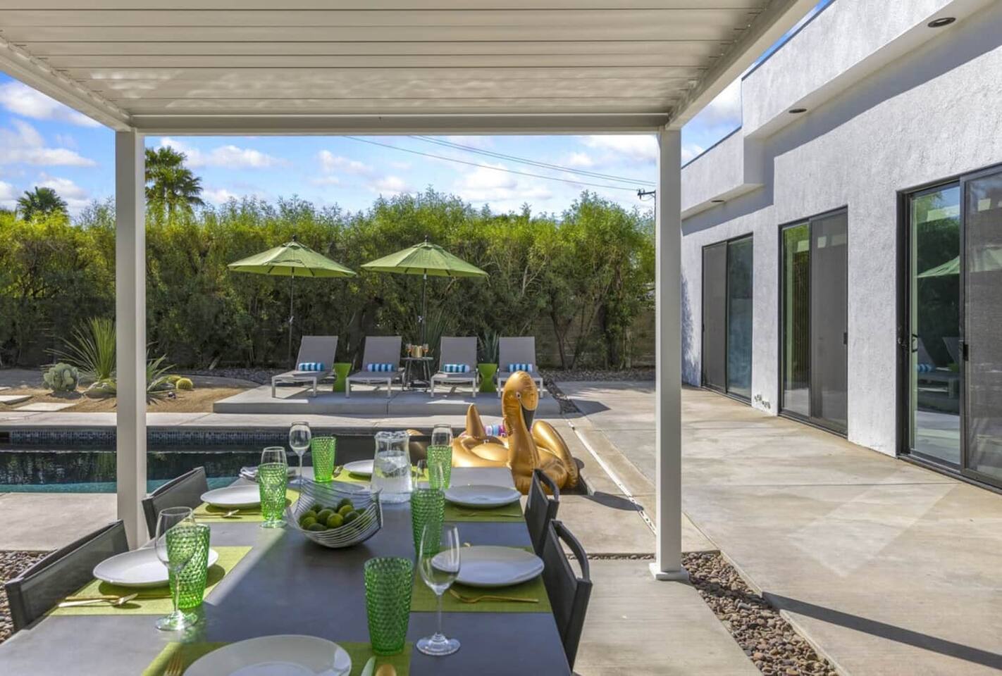 City bed tax of 11.5% will be collected after booking through the Airbnb Resolution Center. Effective July 1, 2021, the city bed tax will be 12.5%. On rentals of 28 nights or longer there is no city bed tax, but the renter is responsible for the entire gas bill from check in to check out, based on meter reads. A utility deposit, which is in addition to the security deposit, will be taken to guarantee payment of the utility charges. Minimum rental age for all guests is 25 or accompanied by parent or legal guardian. No groups larger than 4 (regardless of age) and no parties. Palm Springs has strict noise ordinances for vacation rentals which must be followed. All house rules, which will be available to you before arrival and in the house book at the house, must be followed.1 pet max with $99 plus tax pet fee. Check in time is 4pm, check out is 10am. Early check in and/or late check out may be available for an additional fee. Pool heat is available for a fee per day. Please ask us if interested. The City of Palm Springs requires an additional written contract which you will be sent before your arrival. The city also requires that renters supply a copy of their government issued ID and license plate numbers of personally owned vehicles. Monthly renters are responsible for the entire gas and electric bill based on meter reads from check-in to check out. The utility deposit of $2,500 is collected prior to check-in. PLEASE NOTE: All legitimate, licensed vacation rentals in Palm Springs follow city-wide vacation rental laws to remain in business. These include occupancy limits, good neighbor policies, party-free homes, the collection of separate bed taxes, no outdoor music permitted, minimum age of 25, and an actual contract signed by the responsible renter. This adds an extra step to the quick AirBnB booking process, but we believe you will find our beautiful Palm Springs property is worth the extra effort. Although we don't make these laws, we do follow them, so thank you for your understanding in advance.