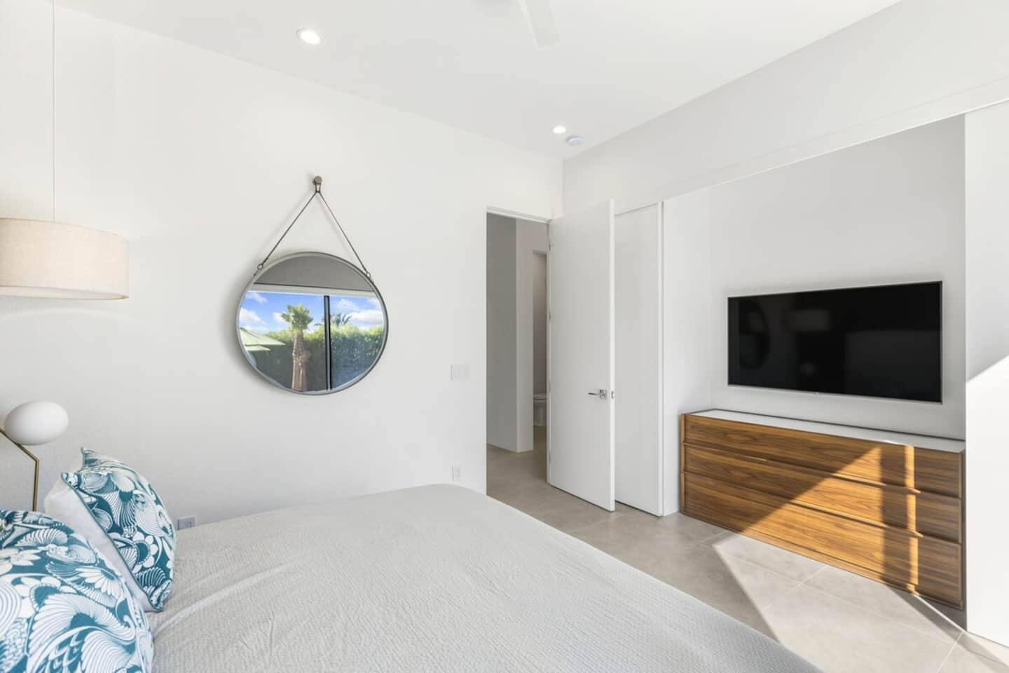 Palm Springs is best explored by car, and there is free covered parking at the house. Rideshare services like Uber and Lyft are widely available, and the Palm Springs International Airport is less than 10 minutes away. Downtown Palm Springs is only 5 minutes from the home, making it easy to enjoy shopping, dining, nightlife, and cultural events without a long drive.
