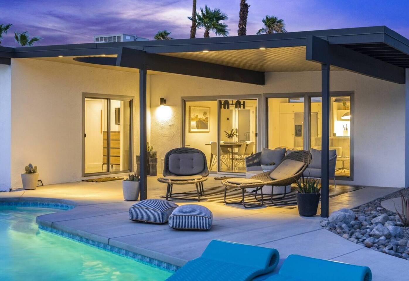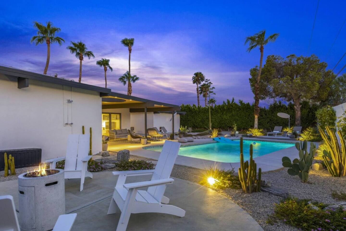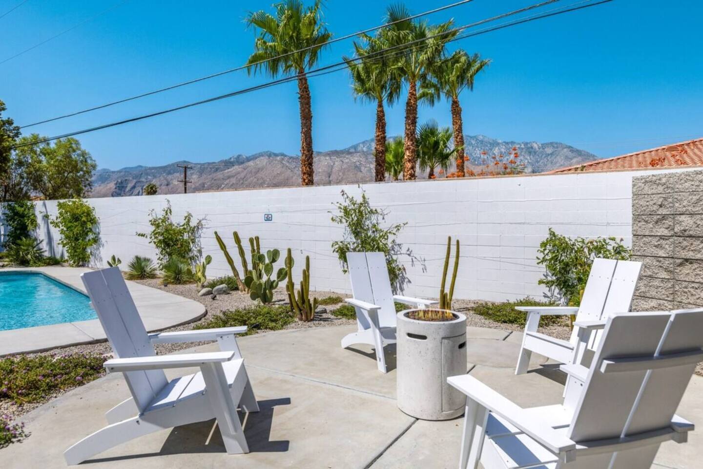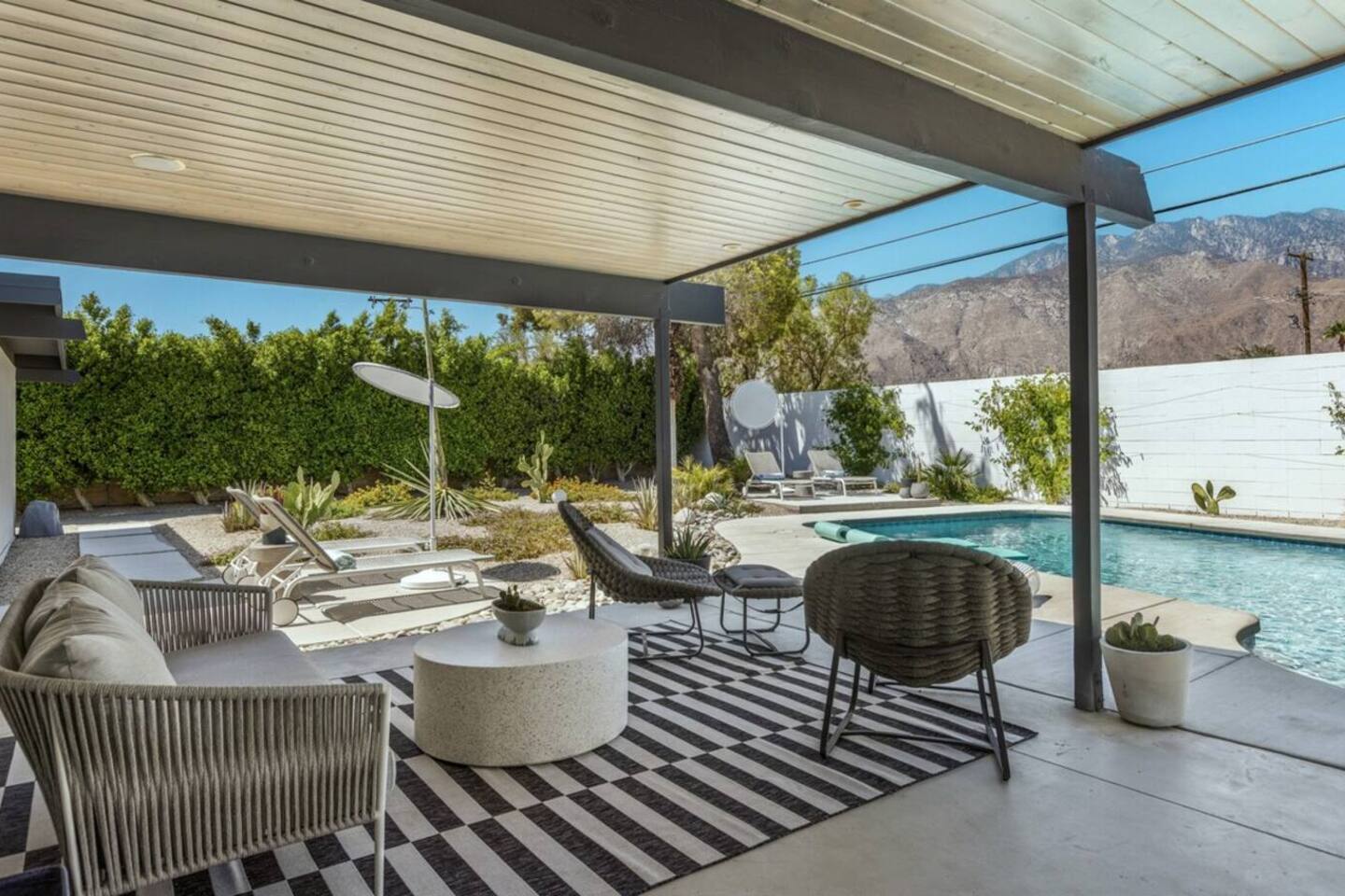 City ID 1858, TOT 9182 About our home- 3 bedroom, 2 bathroom home in a quiet neighborhood Thoughtfully designed and fully remodeled, this home exudes the Modern West lifestyle of Palm Springs Stylish and unique amenities including a resort-style backyard surrounded by privacy - Gorgeous views of the San Jacinto Mountains Walking distance from Starbucks, restaurants and grocery store - Convenient location just minutes away from the best dining & entertainment in Palm Springs Minutes from downtown Palm Springs the neighborhood is clean, quiet, and conveniently located just two blocks from Victoria Park (great for the kids!) and less than five minutes drive from Downtown Palm Springs and Agua Caliente Casino. BEDROOMS & BATHROOMS - 3 large bedrooms with new Casper mattresses and West Elm linens; 1 king, 2 queens - 2 bathrooms with large vanities, modern fixtures and spacious walk-in showers - Lots of closet space, new high speed fans and KITCHEN & DINING AREAS - Fully-equipped kitchen with full-sized cooking appliances -Indoor and outdoor dining options -French press, Espresso and Keurig coffee options Built for entertainers, the kitchen and dining spaces are open and easy for the desert lifestyle. For indoor dining, the new Italian porcelain countertops and Bertoia bar stools at the counter are perfect for coffee and apps. The Room and Board dining table & Eames dinning chairs are perfect for a more formal meal. For brunch or sunset happy hour check out the outdoor long dining table with views of the San Jacinto mountains or enjoy the loungy couch and chairs. LIVING ROOM - Smart TV with digital surround sound and Apple TV - Family games, puzzles, and other activities While you may not be spending a whole lot of time indoors during your stay in Palm Springs, when you do need a break from the sun, the cozy living room is the perfect place to relax and unwind. It features a large sectional couch, shades to cool you off and plenty of fun activities including puzzles, books and games. BACKYARD & OUTDOOR SPACE - Beautiful heated pool with floats included (pool heat is available for daily fee based on season) Outdoor shower Gas firepit and Adirondack chairs Luxurious modern outdoor furniture throughout the backyard Natural gas BBQ grill Outdoor dining area with the best views during dinner The spacious and secluded backyard area is where you’ll want to spend most of your time. Start your day with a book under the palm tree or a morning swim and end it under the gorgeous sky lounging near the fire pit. Pool heat is available for a fee per day. Please ask us if interested. A Note from the owners: A personal note from Monika and Jay, the owners of the home. We have been drawn to Palm Springs for as long as we can remember and were finally able to find a property we loved to own. We are fascinated by the classic Mid Century modern design feel with hints of old Hollywood all throughout Palm Springs. We wanted to maintain the architectural integrity of the renowned Hugh Kaptur design but bring in some simple modern elements that allow us to relax and decompress into the desert landscape. We hope you enjoy the home as much as we do with those you love! The pool and yard are our favorite place in the home. Watching the sunset with friends on the outdoor couch with a fresh cocktail is one of our favorite places to be, and hope you do the same!