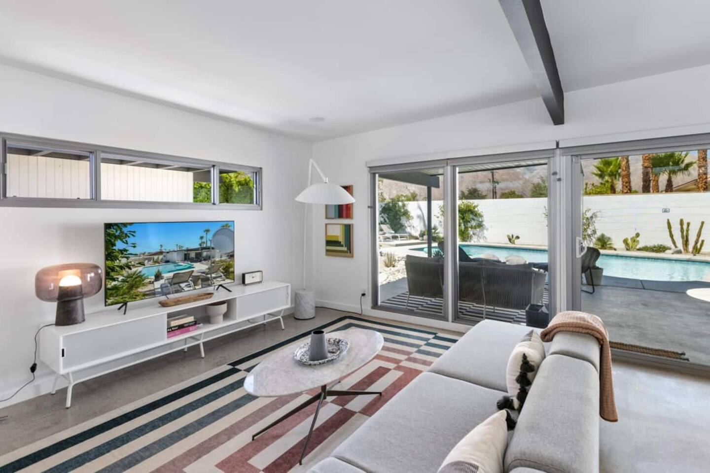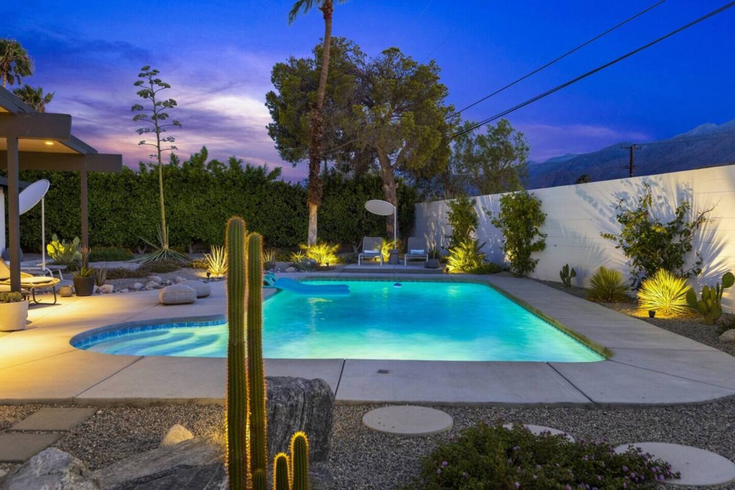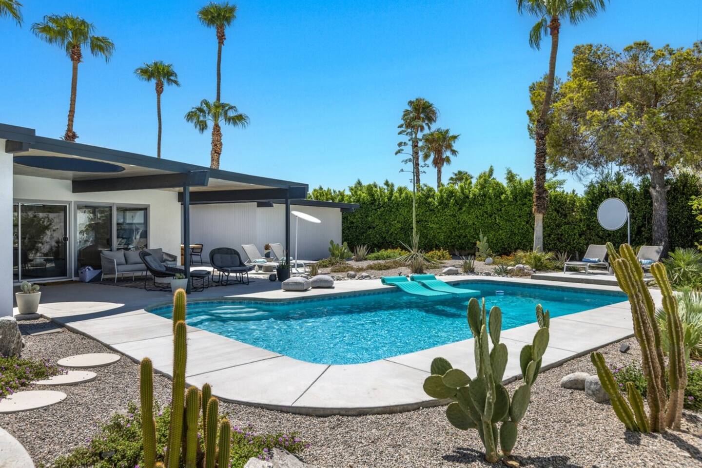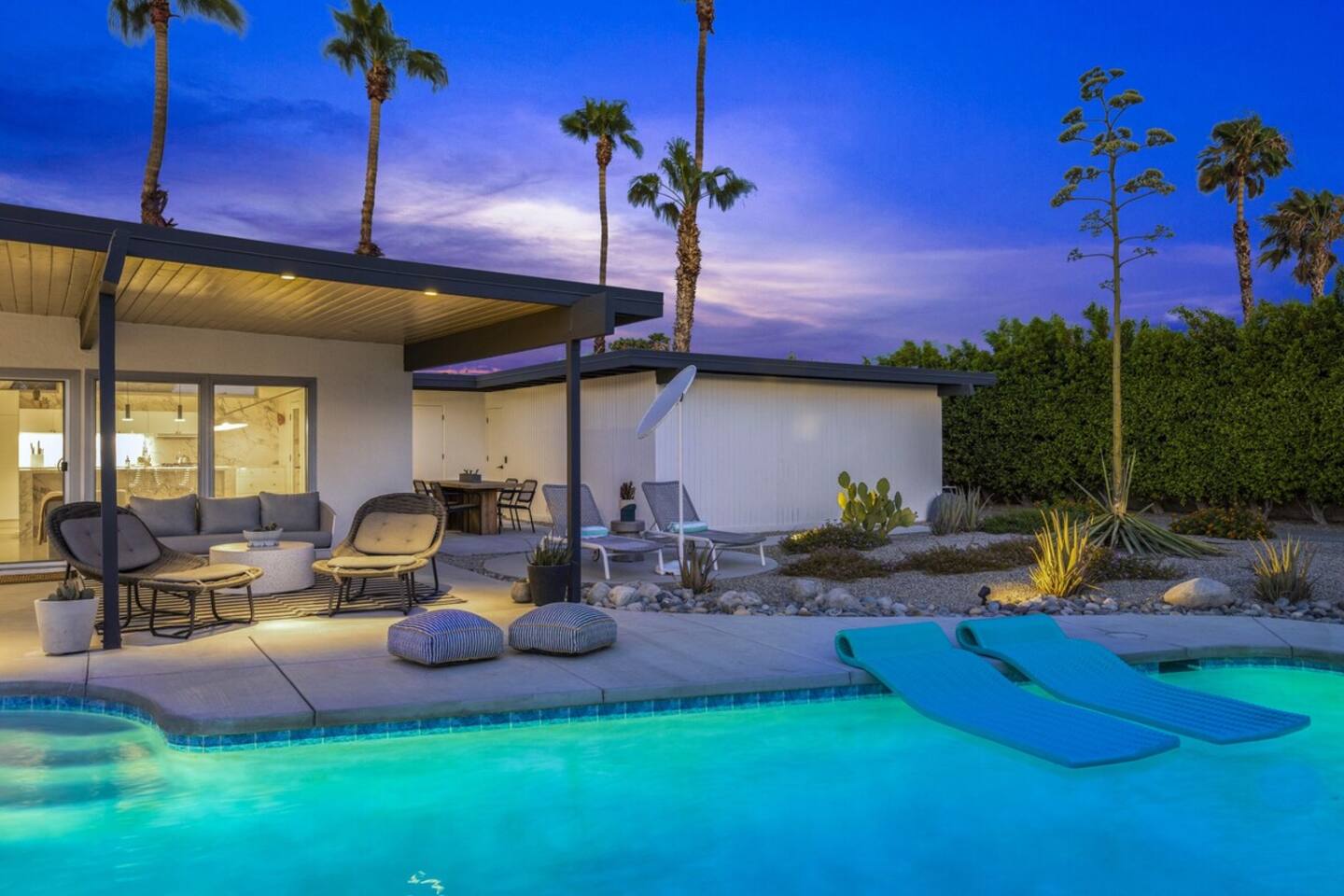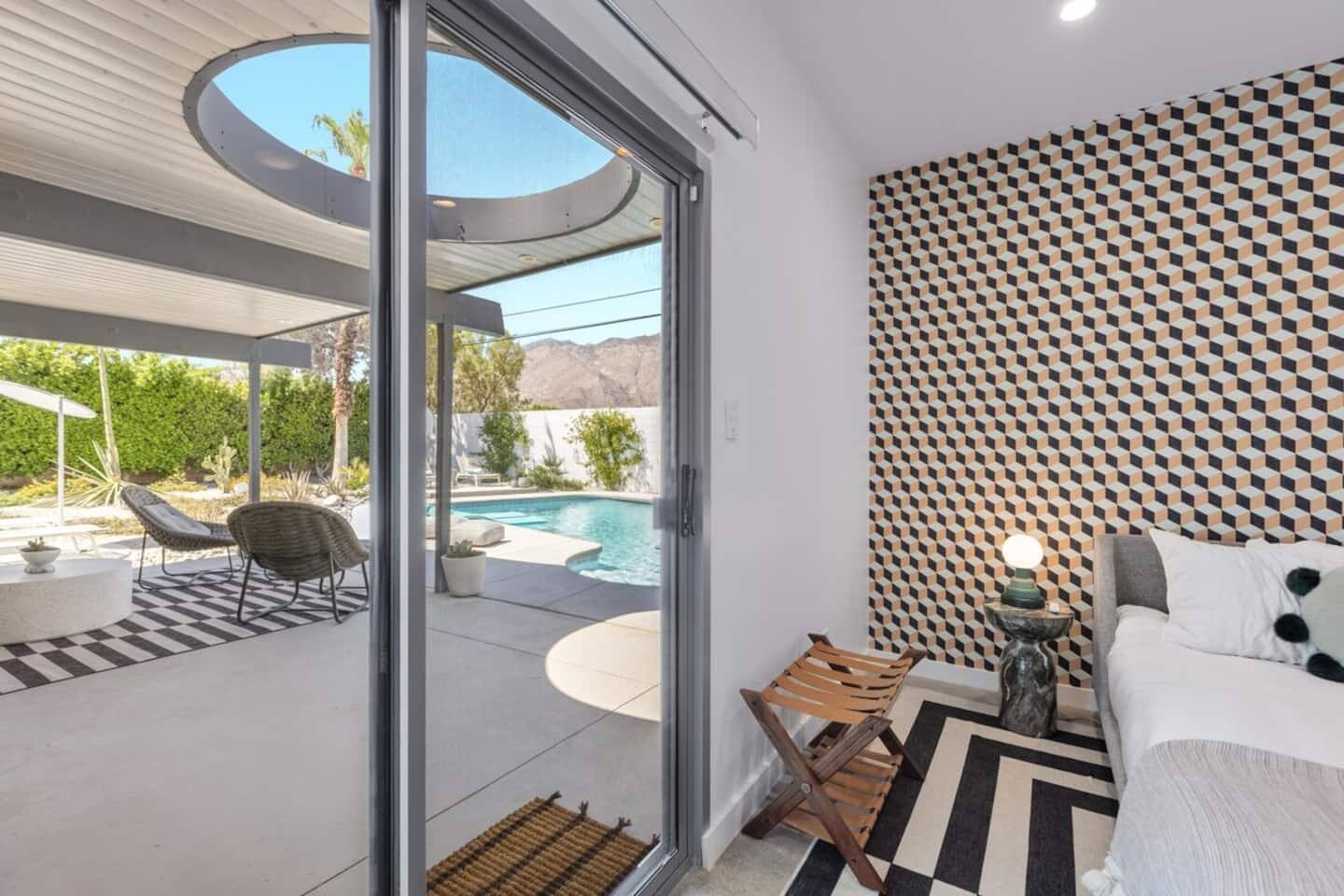 City ID 1858, TOT 9182 About our home- 3 bedroom, 2 bathroom home in a quiet neighborhood Thoughtfully designed and fully remodeled, this home exudes the Modern West lifestyle of Palm Springs Stylish and unique amenities including a resort-style backyard surrounded by privacy - Gorgeous views of the San Jacinto Mountains Walking distance from Starbucks, restaurants and grocery store - Convenient location just minutes away from the best dining & entertainment in Palm Springs Minutes from downtown Palm Springs the neighborhood is clean, quiet, and conveniently located just two blocks from Victoria Park (great for the kids!) and less than five minutes drive from Downtown Palm Springs and Agua Caliente Casino. BEDROOMS & BATHROOMS - 3 large bedrooms with new Casper mattresses and West Elm linens; 1 king, 2 queens - 2 bathrooms with large vanities, modern fixtures and spacious walk-in showers - Lots of closet space, new high speed fans and KITCHEN & DINING AREAS - Fully-equipped kitchen with full-sized cooking appliances -Indoor and outdoor dining options -French press, Espresso and Keurig coffee options Built for entertainers, the kitchen and dining spaces are open and easy for the desert lifestyle. For indoor dining, the new Italian porcelain countertops and Bertoia bar stools at the counter are perfect for coffee and apps. The Room and Board dining table & Eames dinning chairs are perfect for a more formal meal. For brunch or sunset happy hour check out the outdoor long dining table with views of the San Jacinto mountains or enjoy the loungy couch and chairs. LIVING ROOM - Smart TV with digital surround sound and Apple TV - Family games, puzzles, and other activities While you may not be spending a whole lot of time indoors during your stay in Palm Springs, when you do need a break from the sun, the cozy living room is the perfect place to relax and unwind. It features a large sectional couch, shades to cool you off and plenty of fun activities including puzzles, books and games. BACKYARD & OUTDOOR SPACE - Beautiful heated pool with floats included (pool heat is available for daily fee based on season) Outdoor shower Gas firepit and Adirondack chairs Luxurious modern outdoor furniture throughout the backyard Natural gas BBQ grill Outdoor dining area with the best views during dinner The spacious and secluded backyard area is where you’ll want to spend most of your time. Start your day with a book under the palm tree or a morning swim and end it under the gorgeous sky lounging near the fire pit. Pool heat is available for a fee per day. Please ask us if interested. A Note from the owners: A personal note from Monika and Jay, the owners of the home. We have been drawn to Palm Springs for as long as we can remember and were finally able to find a property we loved to own. We are fascinated by the classic Mid Century modern design feel with hints of old Hollywood all throughout Palm Springs. We wanted to maintain the architectural integrity of the renowned Hugh Kaptur design but bring in some simple modern elements that allow us to relax and decompress into the desert landscape. We hope you enjoy the home as much as we do with those you love! The pool and yard are our favorite place in the home. Watching the sunset with friends on the outdoor couch with a fresh cocktail is one of our favorite places to be, and hope you do the same!
