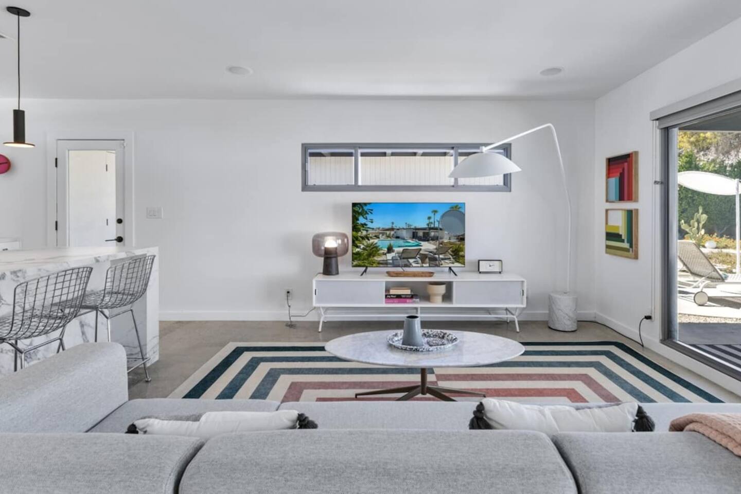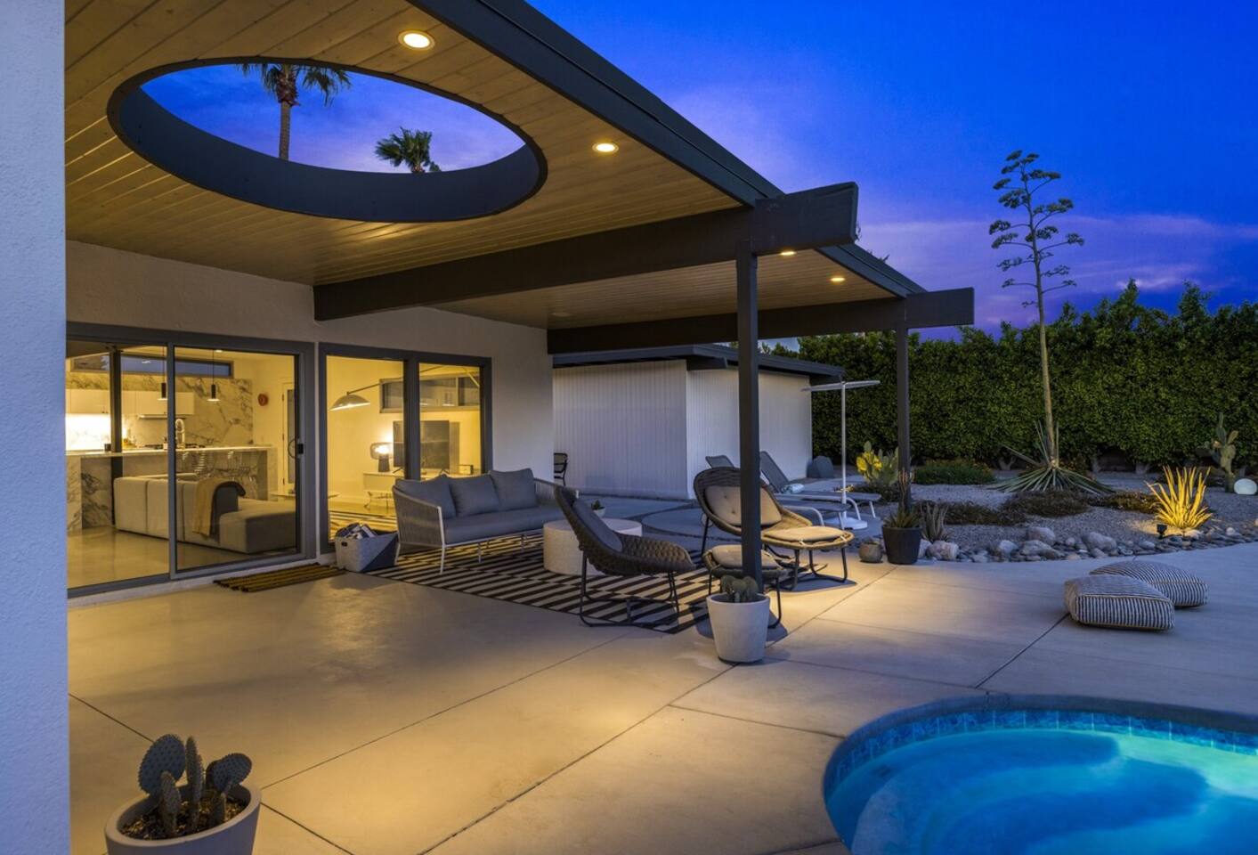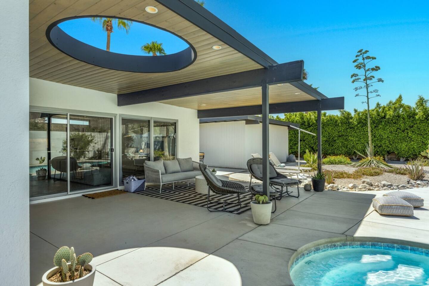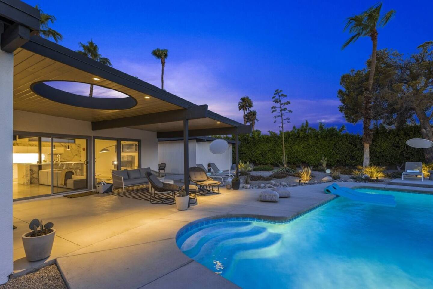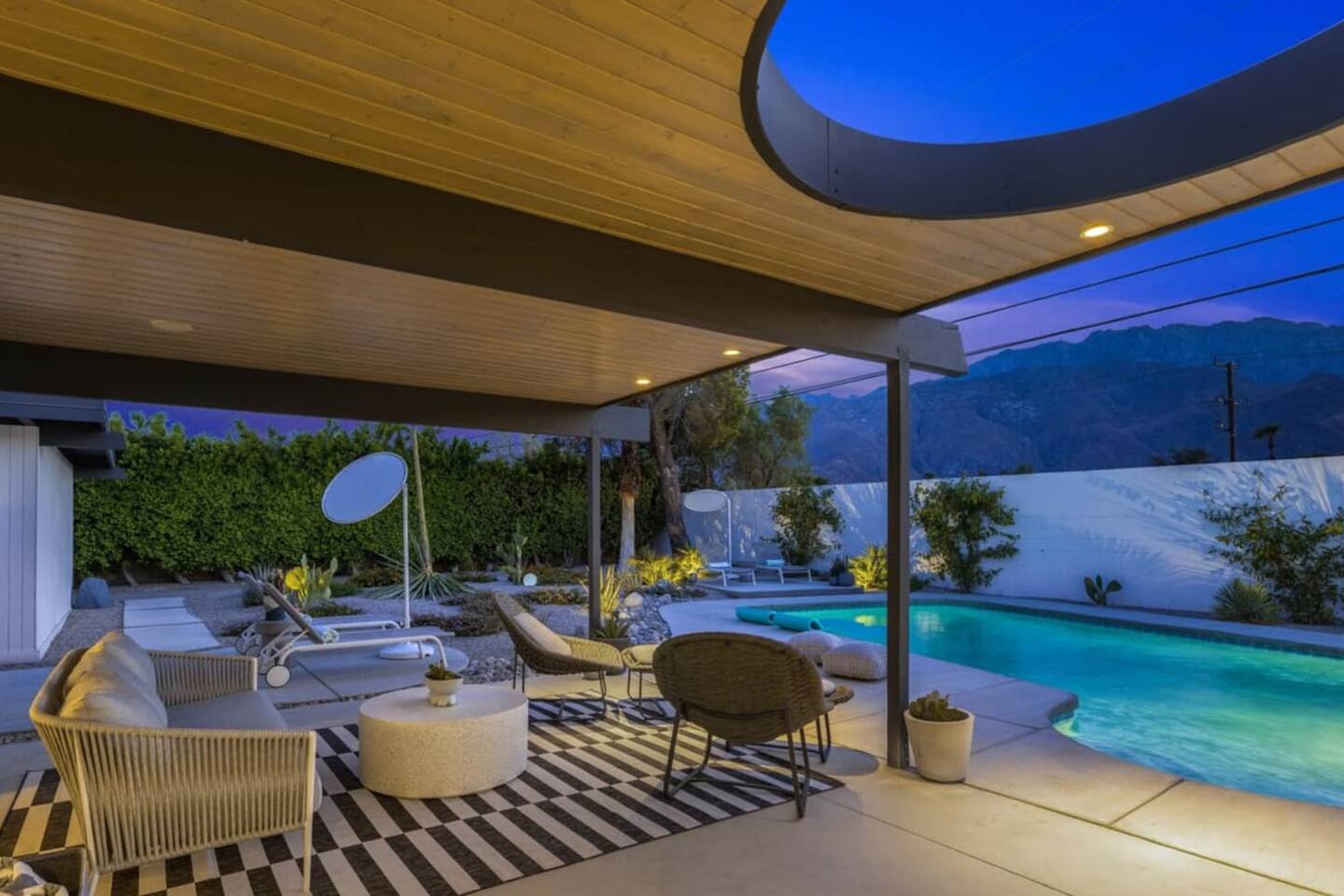 City ID 1858, TOT 9182 About our home- 3 bedroom, 2 bathroom home in a quiet neighborhood Thoughtfully designed and fully remodeled, this home exudes the Modern West lifestyle of Palm Springs Stylish and unique amenities including a resort-style backyard surrounded by privacy - Gorgeous views of the San Jacinto Mountains Walking distance from Starbucks, restaurants and grocery store - Convenient location just minutes away from the best dining & entertainment in Palm Springs Minutes from downtown Palm Springs the neighborhood is clean, quiet, and conveniently located just two blocks from Victoria Park (great for the kids!) and less than five minutes drive from Downtown Palm Springs and Agua Caliente Casino. BEDROOMS & BATHROOMS - 3 large bedrooms with new Casper mattresses and West Elm linens; 1 king, 2 queens - 2 bathrooms with large vanities, modern fixtures and spacious walk-in showers - Lots of closet space, new high speed fans and KITCHEN & DINING AREAS - Fully-equipped kitchen with full-sized cooking appliances -Indoor and outdoor dining options -French press, Espresso and Keurig coffee options Built for entertainers, the kitchen and dining spaces are open and easy for the desert lifestyle. For indoor dining, the new Italian porcelain countertops and Bertoia bar stools at the counter are perfect for coffee and apps. The Room and Board dining table & Eames dinning chairs are perfect for a more formal meal. For brunch or sunset happy hour check out the outdoor long dining table with views of the San Jacinto mountains or enjoy the loungy couch and chairs. LIVING ROOM - Smart TV with digital surround sound and Apple TV - Family games, puzzles, and other activities While you may not be spending a whole lot of time indoors during your stay in Palm Springs, when you do need a break from the sun, the cozy living room is the perfect place to relax and unwind. It features a large sectional couch, shades to cool you off and plenty of fun activities including puzzles, books and games. BACKYARD & OUTDOOR SPACE - Beautiful heated pool with floats included (pool heat is available for daily fee based on season) Outdoor shower Gas firepit and Adirondack chairs Luxurious modern outdoor furniture throughout the backyard Natural gas BBQ grill Outdoor dining area with the best views during dinner The spacious and secluded backyard area is where you’ll want to spend most of your time. Start your day with a book under the palm tree or a morning swim and end it under the gorgeous sky lounging near the fire pit. Pool heat is available for a fee per day. Please ask us if interested. A Note from the owners: A personal note from Monika and Jay, the owners of the home. We have been drawn to Palm Springs for as long as we can remember and were finally able to find a property we loved to own. We are fascinated by the classic Mid Century modern design feel with hints of old Hollywood all throughout Palm Springs. We wanted to maintain the architectural integrity of the renowned Hugh Kaptur design but bring in some simple modern elements that allow us to relax and decompress into the desert landscape. We hope you enjoy the home as much as we do with those you love! The pool and yard are our favorite place in the home. Watching the sunset with friends on the outdoor couch with a fresh cocktail is one of our favorite places to be, and hope you do the same!