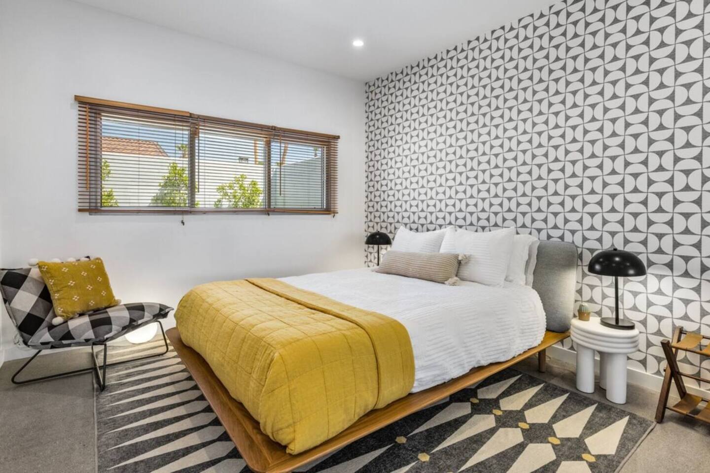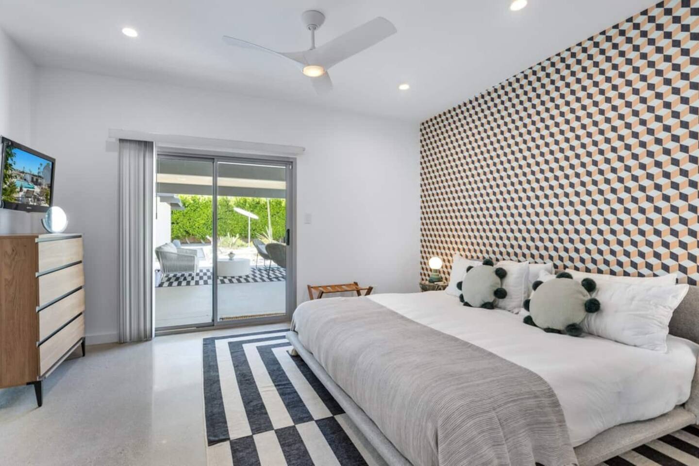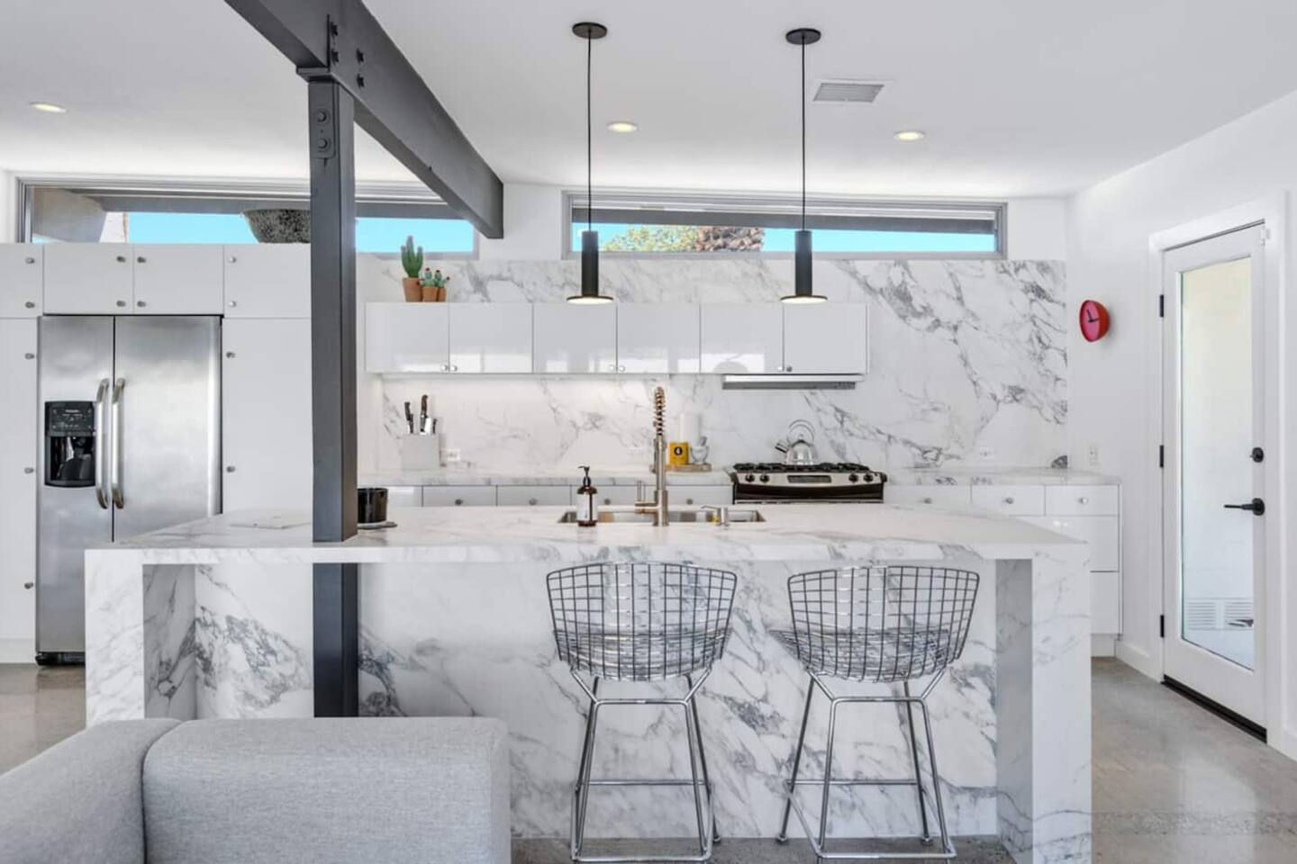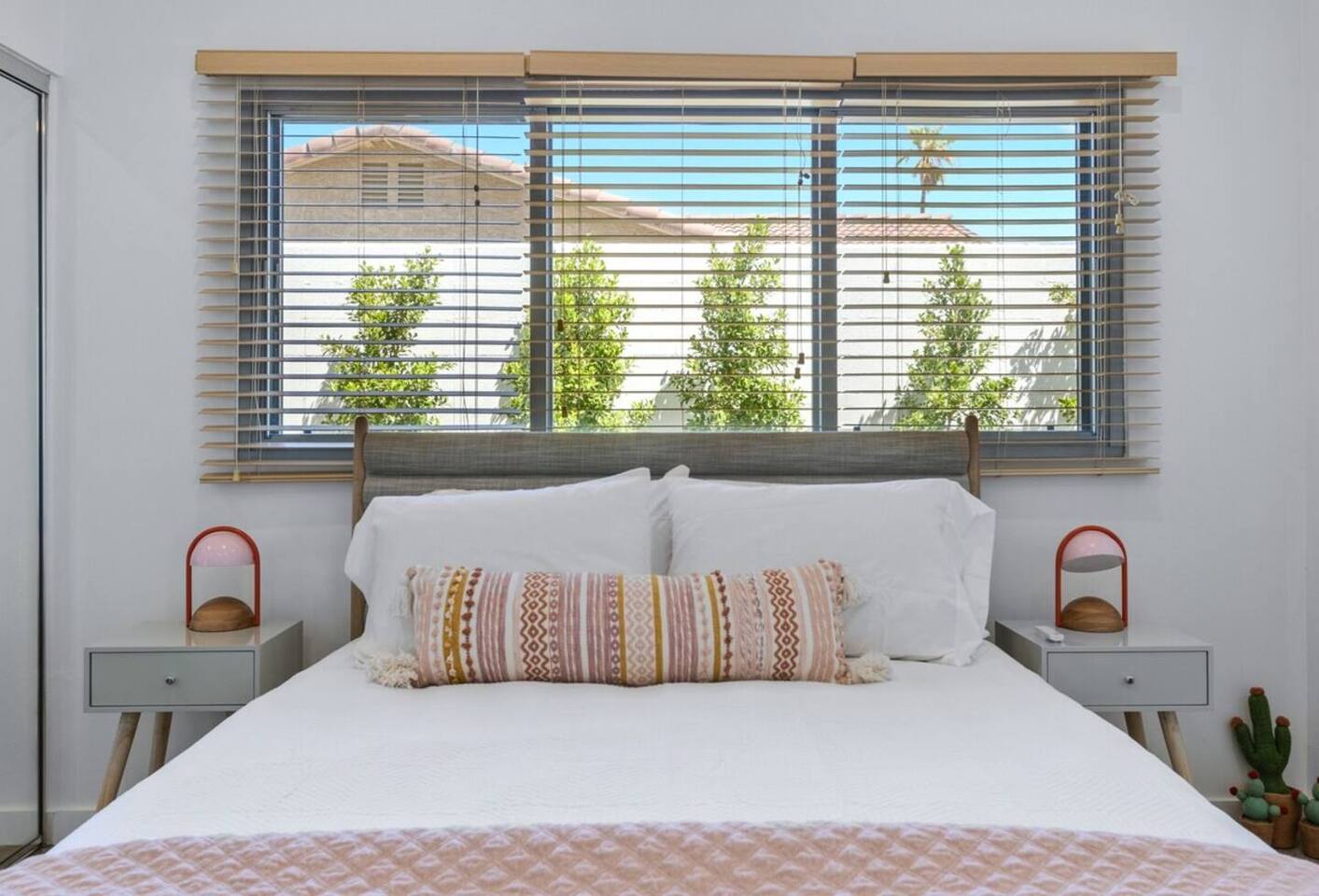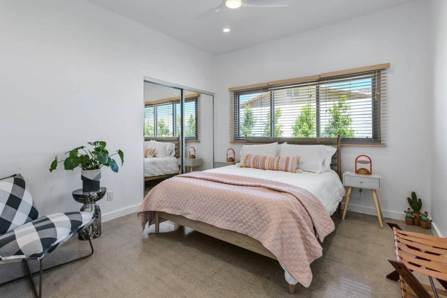 City ID 1858, TOT 9182 About our home- 3 bedroom, 2 bathroom home in a quiet neighborhood Thoughtfully designed and fully remodeled, this home exudes the Modern West lifestyle of Palm Springs Stylish and unique amenities including a resort-style backyard surrounded by privacy - Gorgeous views of the San Jacinto Mountains Walking distance from Starbucks, restaurants and grocery store - Convenient location just minutes away from the best dining & entertainment in Palm Springs Minutes from downtown Palm Springs the neighborhood is clean, quiet, and conveniently located just two blocks from Victoria Park (great for the kids!) and less than five minutes drive from Downtown Palm Springs and Agua Caliente Casino. BEDROOMS & BATHROOMS - 3 large bedrooms with new Casper mattresses and West Elm linens; 1 king, 2 queens - 2 bathrooms with large vanities, modern fixtures and spacious walk-in showers - Lots of closet space, new high speed fans and KITCHEN & DINING AREAS - Fully-equipped kitchen with full-sized cooking appliances -Indoor and outdoor dining options -French press, Espresso and Keurig coffee options Built for entertainers, the kitchen and dining spaces are open and easy for the desert lifestyle. For indoor dining, the new Italian porcelain countertops and Bertoia bar stools at the counter are perfect for coffee and apps. The Room and Board dining table & Eames dinning chairs are perfect for a more formal meal. For brunch or sunset happy hour check out the outdoor long dining table with views of the San Jacinto mountains or enjoy the loungy couch and chairs. LIVING ROOM - Smart TV with digital surround sound and Apple TV - Family games, puzzles, and other activities While you may not be spending a whole lot of time indoors during your stay in Palm Springs, when you do need a break from the sun, the cozy living room is the perfect place to relax and unwind. It features a large sectional couch, shades to cool you off and plenty of fun activities including puzzles, books and games. BACKYARD & OUTDOOR SPACE - Beautiful heated pool with floats included (pool heat is available for daily fee based on season) Outdoor shower Gas firepit and Adirondack chairs Luxurious modern outdoor furniture throughout the backyard Natural gas BBQ grill Outdoor dining area with the best views during dinner The spacious and secluded backyard area is where you’ll want to spend most of your time. Start your day with a book under the palm tree or a morning swim and end it under the gorgeous sky lounging near the fire pit. Pool heat is available for a fee per day. Please ask us if interested. A Note from the owners: A personal note from Monika and Jay, the owners of the home. We have been drawn to Palm Springs for as long as we can remember and were finally able to find a property we loved to own. We are fascinated by the classic Mid Century modern design feel with hints of old Hollywood all throughout Palm Springs. We wanted to maintain the architectural integrity of the renowned Hugh Kaptur design but bring in some simple modern elements that allow us to relax and decompress into the desert landscape. We hope you enjoy the home as much as we do with those you love! The pool and yard are our favorite place in the home. Watching the sunset with friends on the outdoor couch with a fresh cocktail is one of our favorite places to be, and hope you do the same!