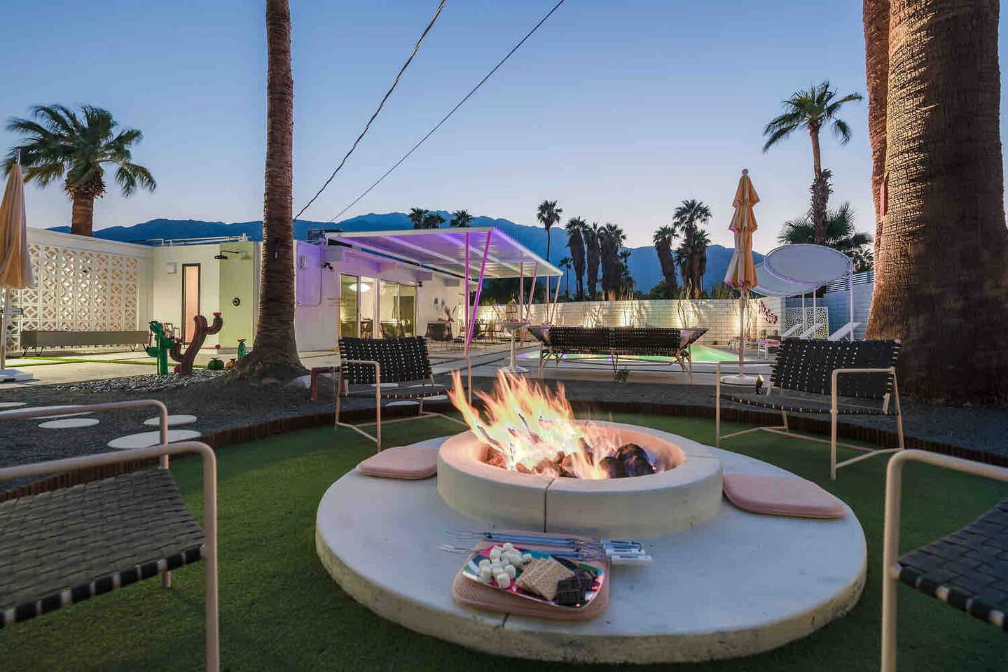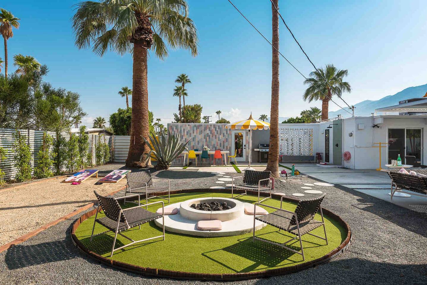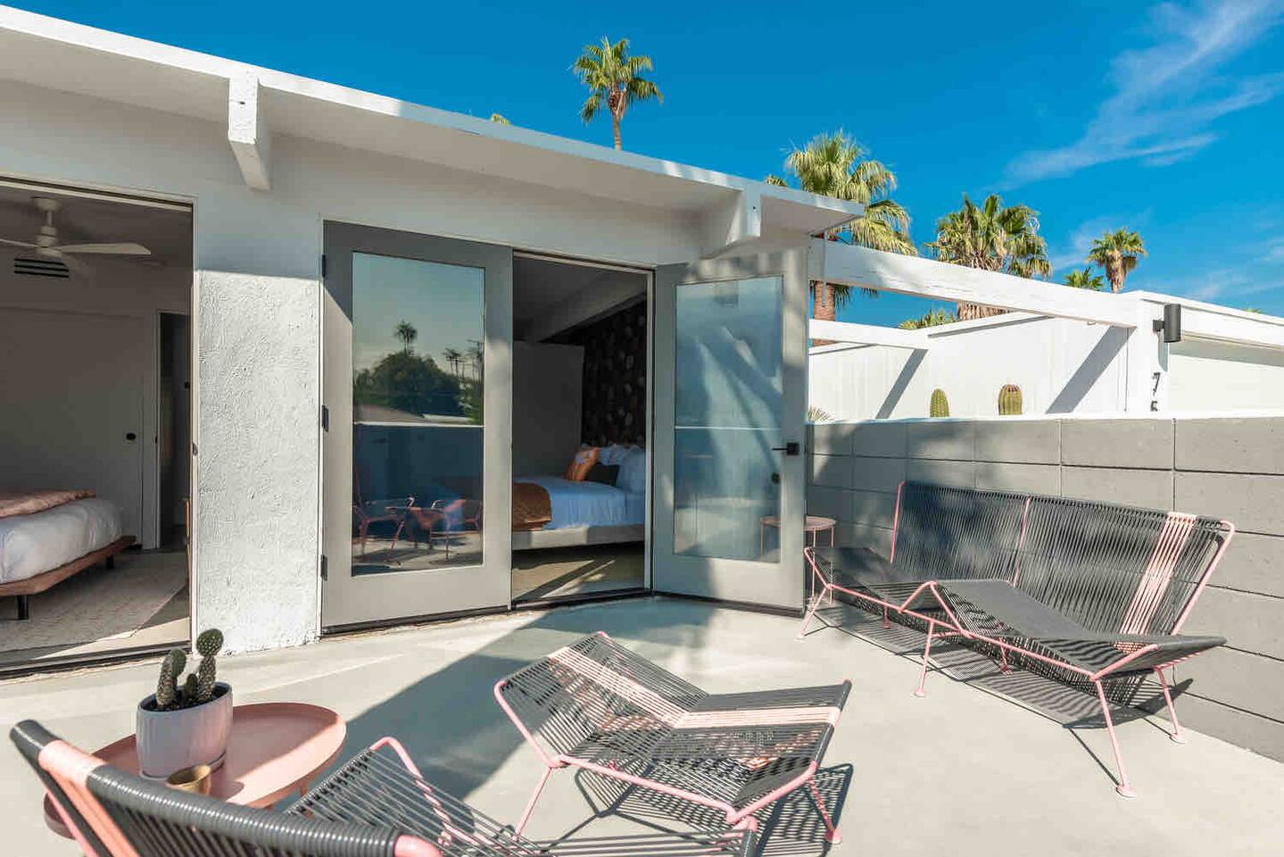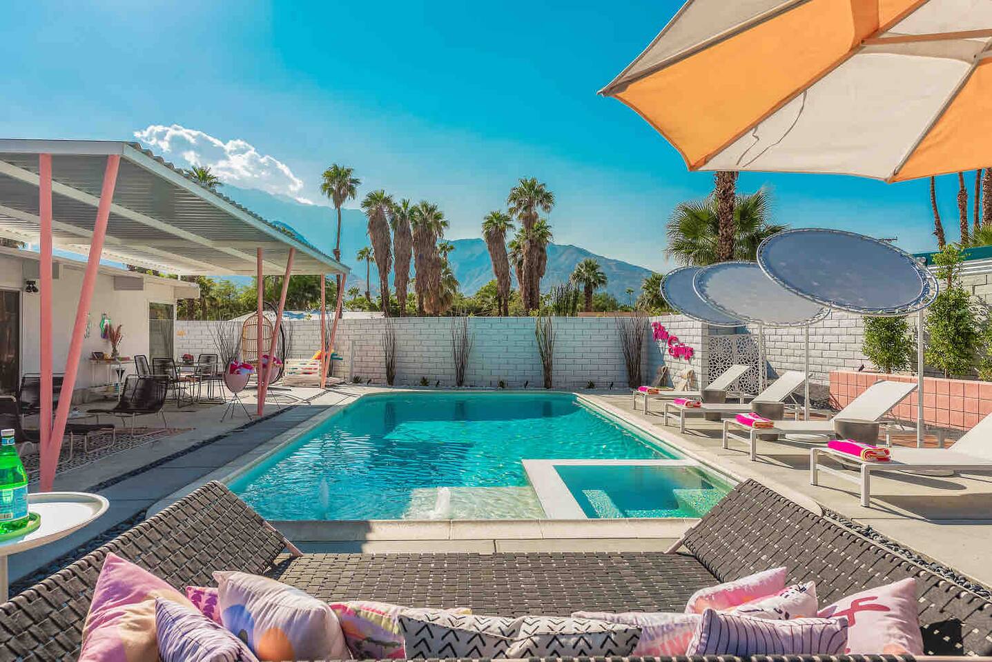 Designed by architects William Krisel and Dan Palmer and built by the Alexander Company in 1959, the home is set in the historic Racquet Club Estates neighborhood, surrounded by other vintage Alexander homes, in a quiet and clean residential area. Victoria Park, perfect for children, is two blocks away. Downtown Palm Springs and the Agua Caliente Casino are less than a five-minute drive away. Highlights include vintage/designer furniture throughout the interior and exterior, terrific views of the mountains and the tram from the house and backyard, resort-style yard, washer/dryer and a garage. Brand-new AC unit that blows cold and strong. Master bedroom has a king bed and it’s own private courtyard and private bathroom with step-in shower. Second bedroom has a king bed with access to shared courtyard. Third bedroom has a queen bed with access to shared courtyard. All bedrooms come with linen/cotton robes, yoga mats and extra towels inside their closet. We use premium Brooklinen cotton percale bedding and feature Casper mattresses and pillows in each bedroom Main guest bathroom has double vanity sinks and a large shower. Ceiling fans, night lights and phone chargers in every room. Smart TVs in every room so you can access your own streaming services in a flash. We have Disney Plus for you! A gourmet retro kitchen with everything you need to enjoy dining in or dining al fresco. There are five dining options around the house. Inside, enjoy a lovely meal around a round, marble-top table with authentic Charles and Ray Eames dining chairs by Henry Miller, or opt out for casual dining around the original kitchen island that was built in 1959. In the yard, enjoy a bistro-style meal under the covered awning or go all out for a big meal on our spacious concrete dining table that can seat 10 -12 guests. There is another bistro-style table in the front courtyard. A Roy Lichtenstein inspired wet bar with high-capacity ice maker, beverage/wine cooler and vintage 1960’s smoke grey glasses. We love good coffee and hope you do too. We are proud owners of a Jura automatic espresso/coffee maker that freshly grinds beans for every delicious cup. We also have various tea options and decaf coffee on hand. There is also an electric kettle and French press. There is a high-end turntable with external speakers to listen to a collection of our vinyls to add background music to your ambiance. Speakers are Bluetooth ready, so you can easily connect your own device. Because of the city’s strict rules on loud music played in vacation homes, we do not have built-in speakers outside in the yard. We have a credenza filled with games (poker, backgammon), activities and puzzles. The unique concrete table doubles as a ping-pong/outdoor dining table combo for those bbq dinners or sporting challenges. We also have a newly built Bocce ball court with scorekeeper. You can also play other lawn games such as Bottle Bash and Cornhole on the court as well. For BBQing, we offer a WEBER natural gas grill as well as a small charcoal grill that is primarily used for kebabs and other skewered bbq. Enjoy our fully-renovated 8' deep saltwater swimming pool complete with built-in jacuzzi spa, tanning ledge, and bubblers with LED light show. We have fun pool floats, noodles and an electric air pump. Pool heating is $75 a day (must heat every day of your stay and we need at least one days notice). We do not heat pool May-September. Spa heating and fire pit usage are included in the cost of the rental. We have a brand-new patio awning spanning the length of the house to provide shade and protection from the elements. We also have sun loungers and a daybed for soaking up the desert sun and a hot/cold outdoor shower to rinse off before and after pool time. We have a yoga/meditation exercise deck for those of you that need your sun salutations in the desert. Enjoy walking through the front breezeway of the house where you can admire various cacti and desert plants in our breezeway garden. Just don’t get too close…cacti have prickly personalities. There’s no reason to leave once you arrive. However, we have lots of suggestions for you in our house manual for dining out, going shopping and enjoying excursions throughout the Coachella valley. This is our home away from home. We are very selective with who we think will be a good fit for renting our property; this is why we don’t allow instant booking. For starters, the home is surrounded by full-time neighbors who love and care for our neighborhood. So this is not a party house. Our neighborhood is quiet and serene. We love guests who will care for our home and belongings the same way you care for your home. We have painstakingly poured our hearts and resources into every square inch of this house. We want you to unwind, let go and fully enjoy your vacation here. We just expect our guests to be thoughtful and mindful about caring for the space, whether you’re staying for a couple of nights or for several weeks. Please note that the City of Palm Springs has very strict vacation rental guidelines. These guidelines are set to help balance the needs of the local community as well as the needs of the vibrant tourist culture that our city thrives on. Some guidelines are no loud music that can be heard outside the property line; limited car parking on streets and cars limited to how many bedrooms a vacation home has; neighborhood quiet hours start at 10pm; only two persons per bedroom can stay overnight. Neighbors have a hotline they can call to report vacation rental disturbances to a city compliance officer. We want to avoid this so you don’t get cited with a hefty fine and we don’t get dinged as a problematic vacation rental. Palm Springs city tax of 12.5% is included in the rate sheet. The city also requires an additional written contract which will be sent to you before your arrival. It is a straightforward good-neighbor agreement. We look forward to hearing from you. The City of 