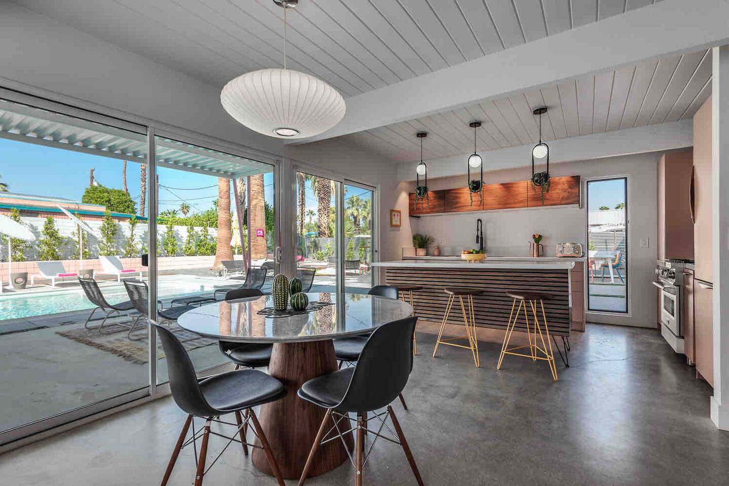 Located in the historic Racquet Club Estates, this home is part of Palm Springs’ rich mid-century modern legacy. The neighborhood is quiet and residential, perfect for relaxing by the pool while still being just minutes from downtown. You’ll be close to trendy restaurants, boutiques, coffee shops, and the Uptown Design District, as well as hiking trails, golf, and world-class architecture tours.