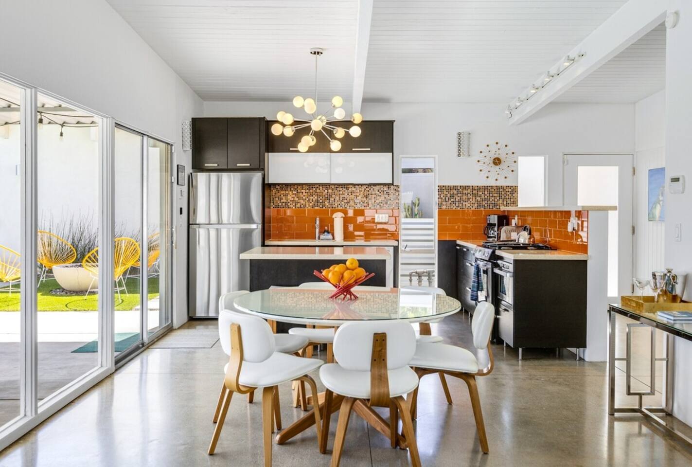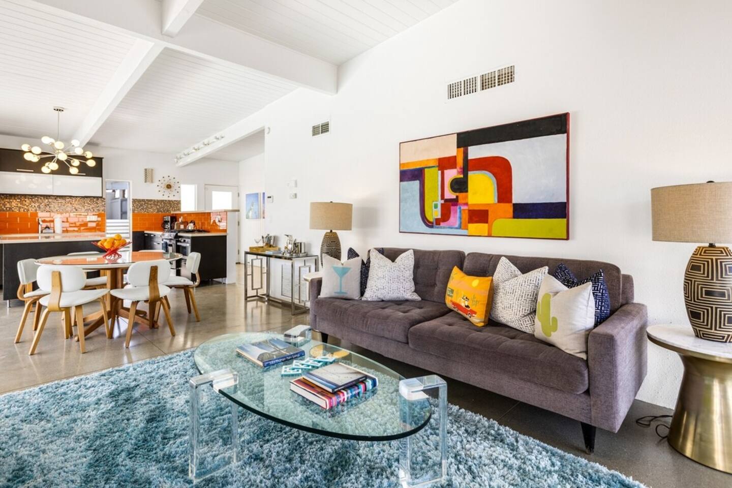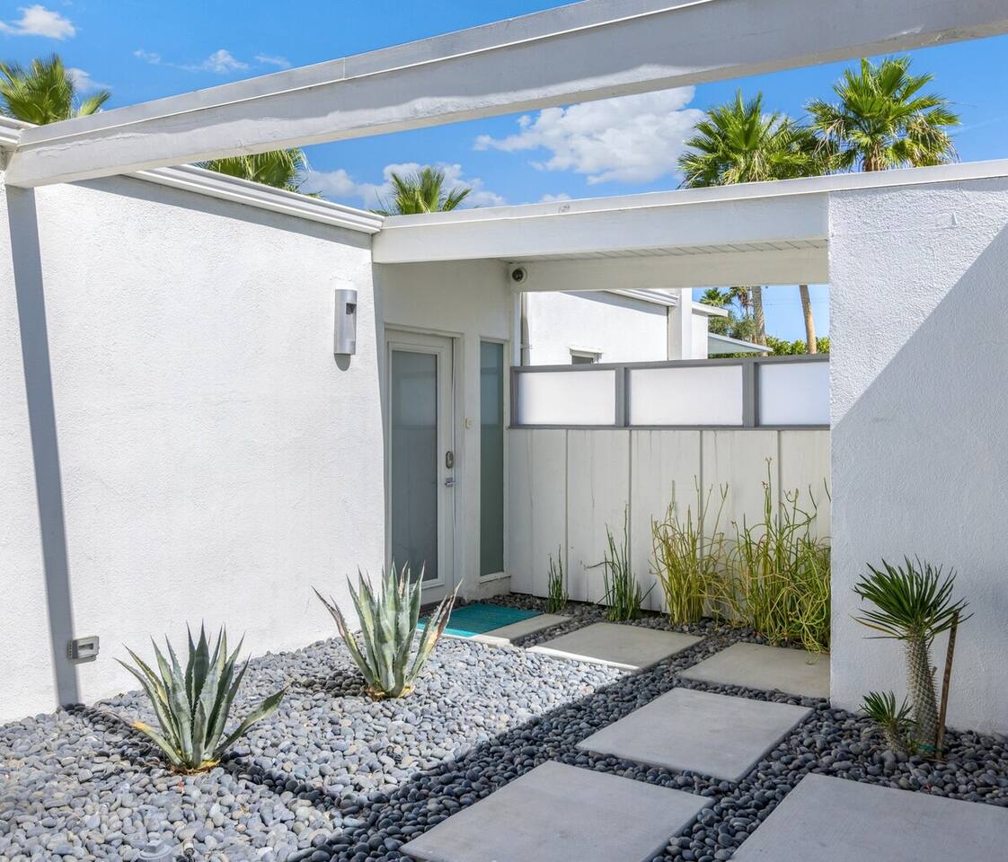 The City of Palm Springs ID#1850 Twenty Three Palms is a fabulous Mid Century Modern private family resort located in the Historic Racquet Club Estates neighborhood. Featured in the Palm Springs Modernism Week Tour , this William Krisel designed Alexander home features a butterfly roof, polished concrete floors and original art throughout. Come stay with us!