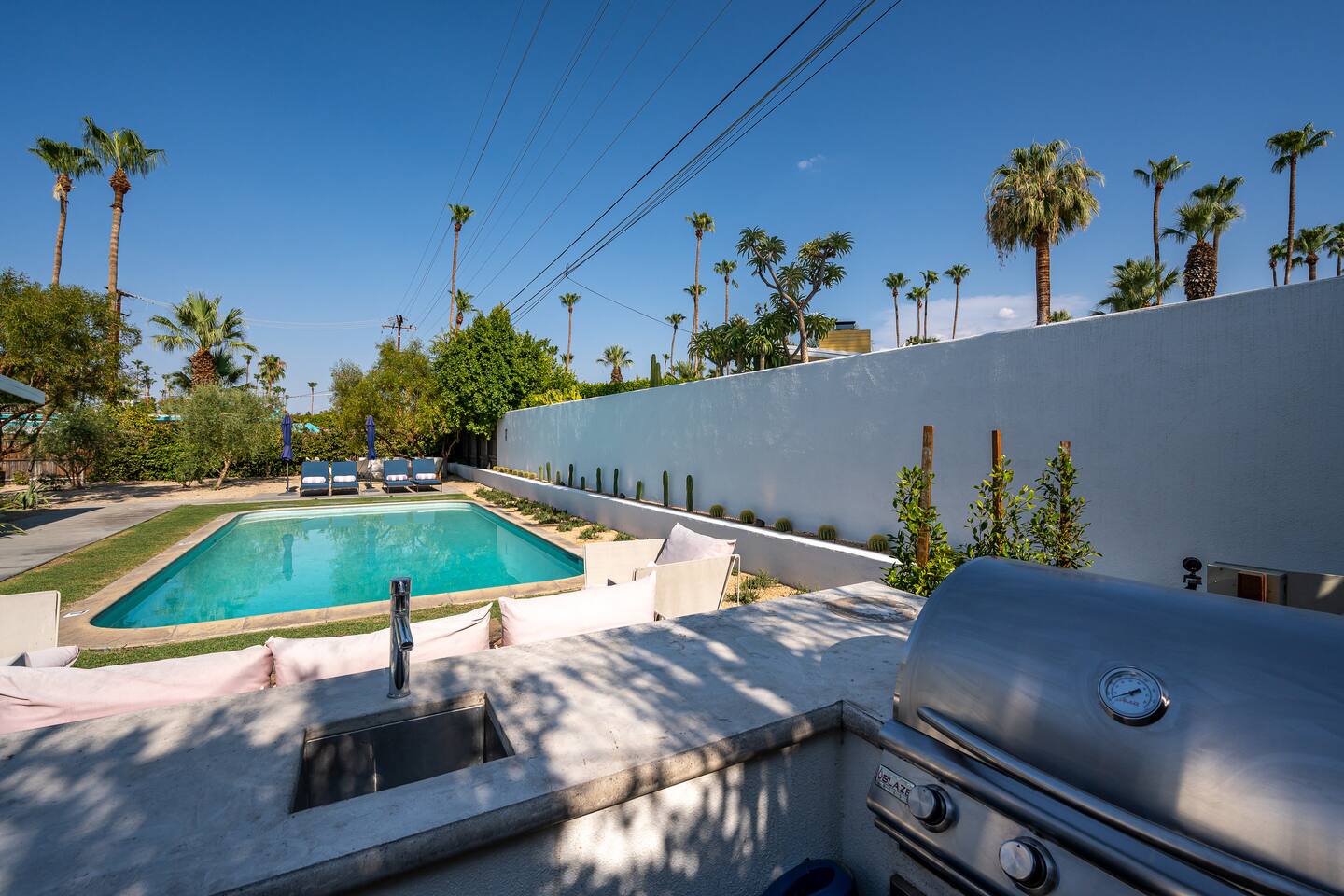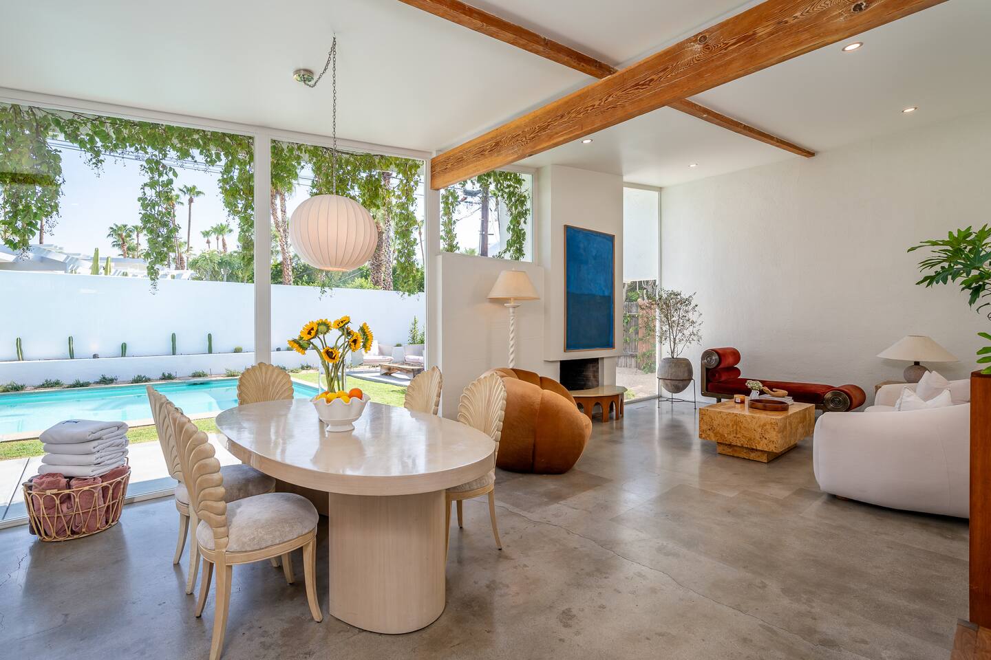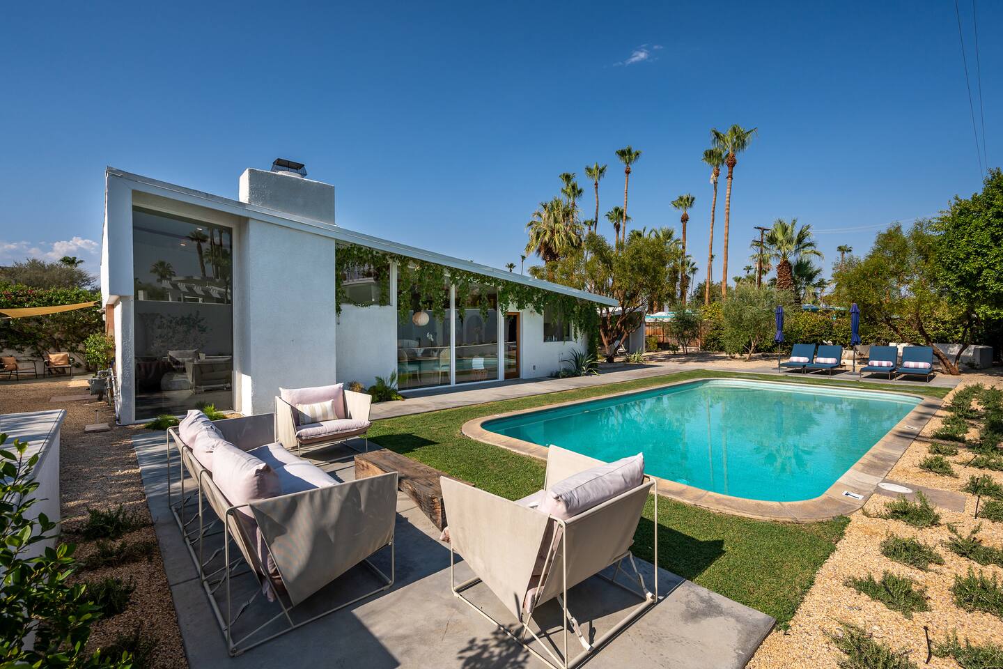 ✨ About This Space Welcome to Smoketree, a bright and stylish retreat in Palm Springs’ iconic Twin Palms neighborhood. This updated mid-century home offers the perfect mix of space, design, and desert living. The main house features 3 king bedrooms and 2 bathrooms, including a primary suite with direct pool access and ensuite bath. The detached casita includes a 4th king bedroom and private bath with tub/shower—ideal for added privacy. Enjoy an open, light-filled living area with floor-to-ceiling windows framing the mountains. The fully equipped kitchen and indoor dining flow seamlessly outdoors for true Palm Springs indoor/outdoor living. Step outside to your private backyard: Heated pool (optional, $99/day) with lounge seating and umbrellas Mountain views framed by palms and desert landscaping Outdoor shower for post-swim refresh Fire pit & BBQ grill for evenings under the stars Smoketree is perfect for families, couples, or groups looking for a stylish getaway close to dining, shopping, and Palm Springs’ best attractions. City ID # 004445