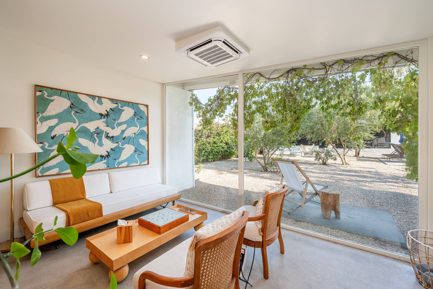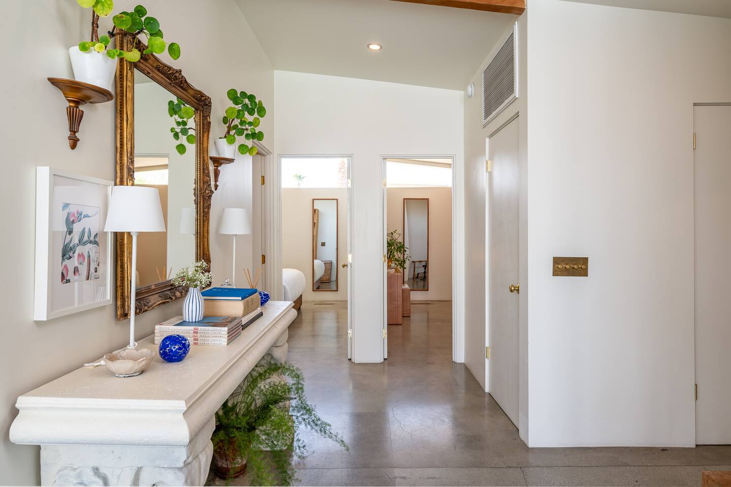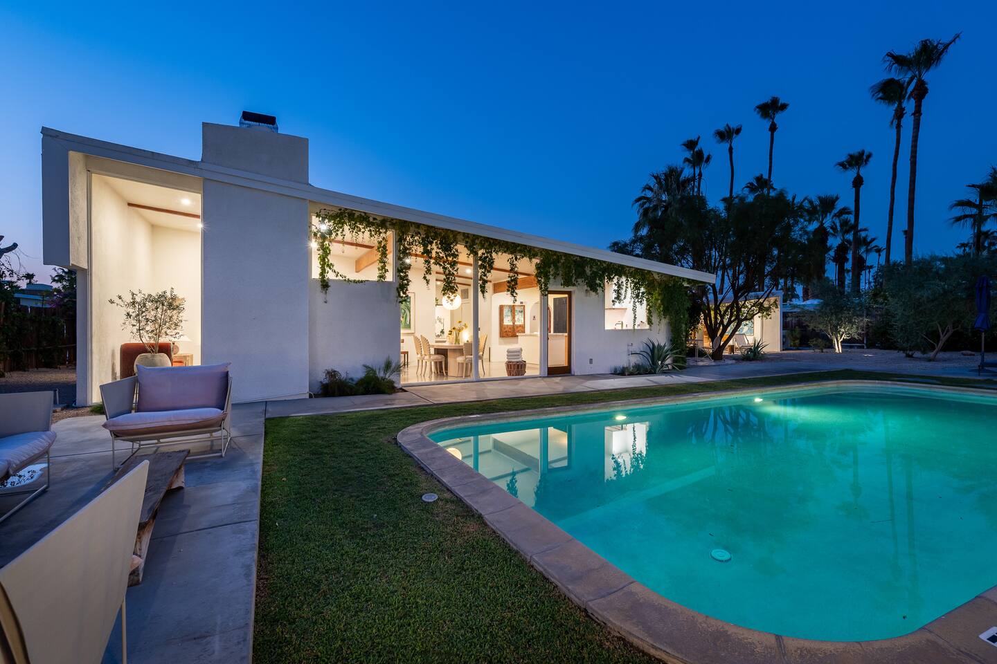 ✨ About This Space Welcome to Smoketree, a bright and stylish retreat in Palm Springs’ iconic Twin Palms neighborhood. This updated mid-century home offers the perfect mix of space, design, and desert living. The main house features 3 king bedrooms and 2 bathrooms, including a primary suite with direct pool access and ensuite bath. The detached casita includes a 4th king bedroom and private bath with tub/shower—ideal for added privacy. Enjoy an open, light-filled living area with floor-to-ceiling windows framing the mountains. The fully equipped kitchen and indoor dining flow seamlessly outdoors for true Palm Springs indoor/outdoor living. Step outside to your private backyard: Heated pool (optional, $99/day) with lounge seating and umbrellas Mountain views framed by palms and desert landscaping Outdoor shower for post-swim refresh Fire pit & BBQ grill for evenings under the stars Smoketree is perfect for families, couples, or groups looking for a stylish getaway close to dining, shopping, and Palm Springs’ best attractions. City ID # 004445