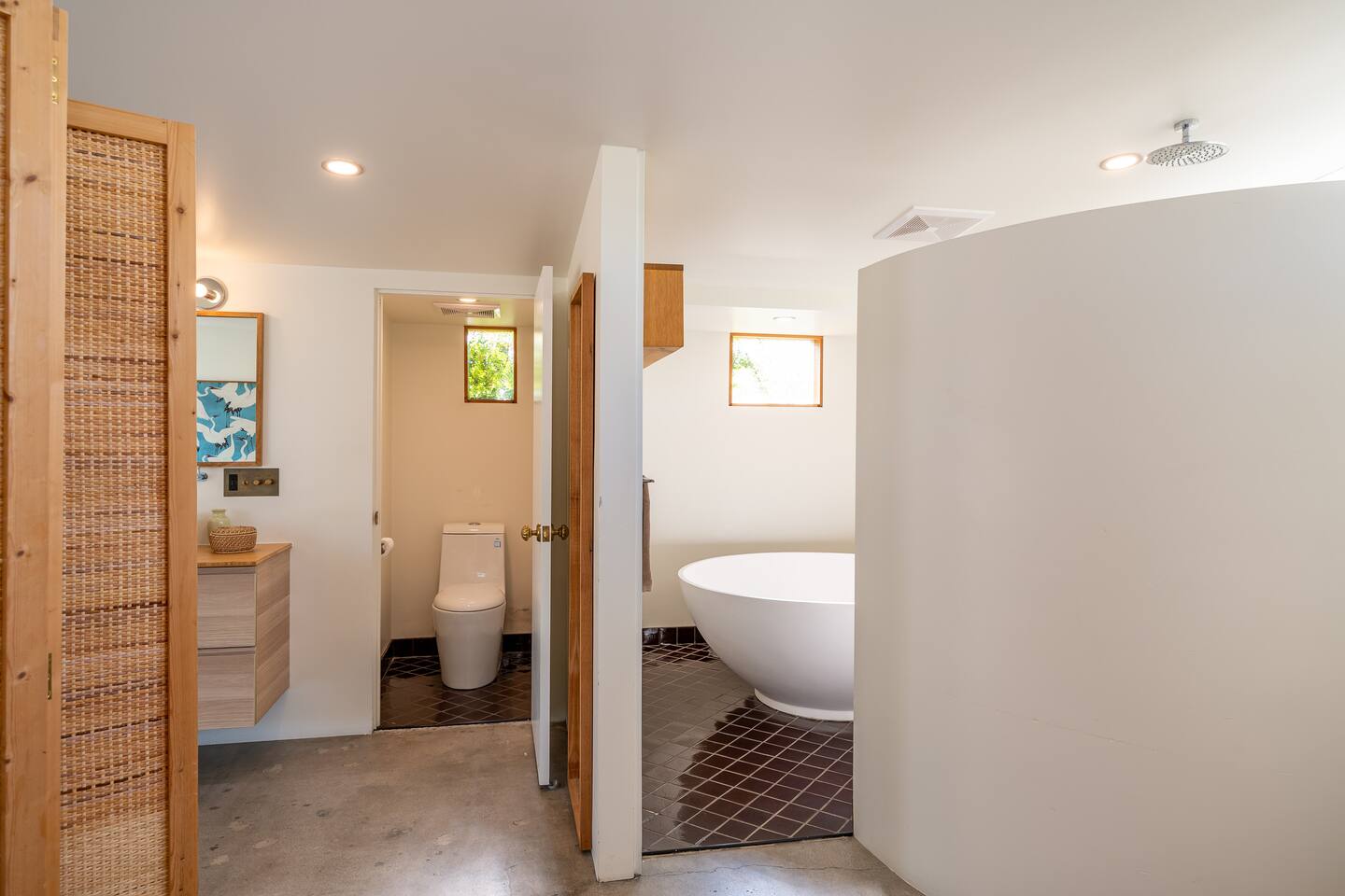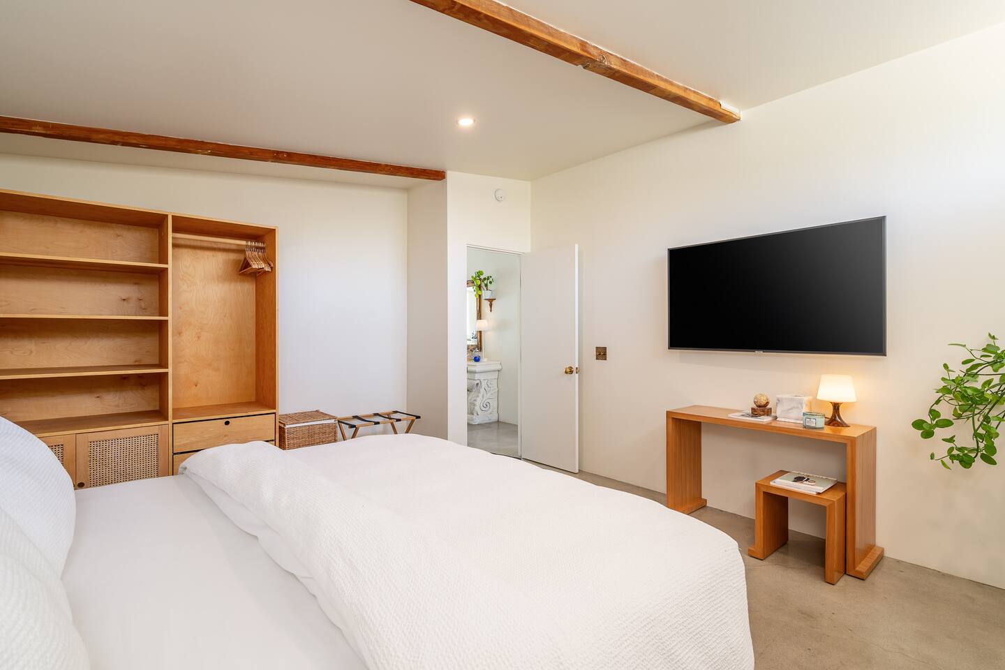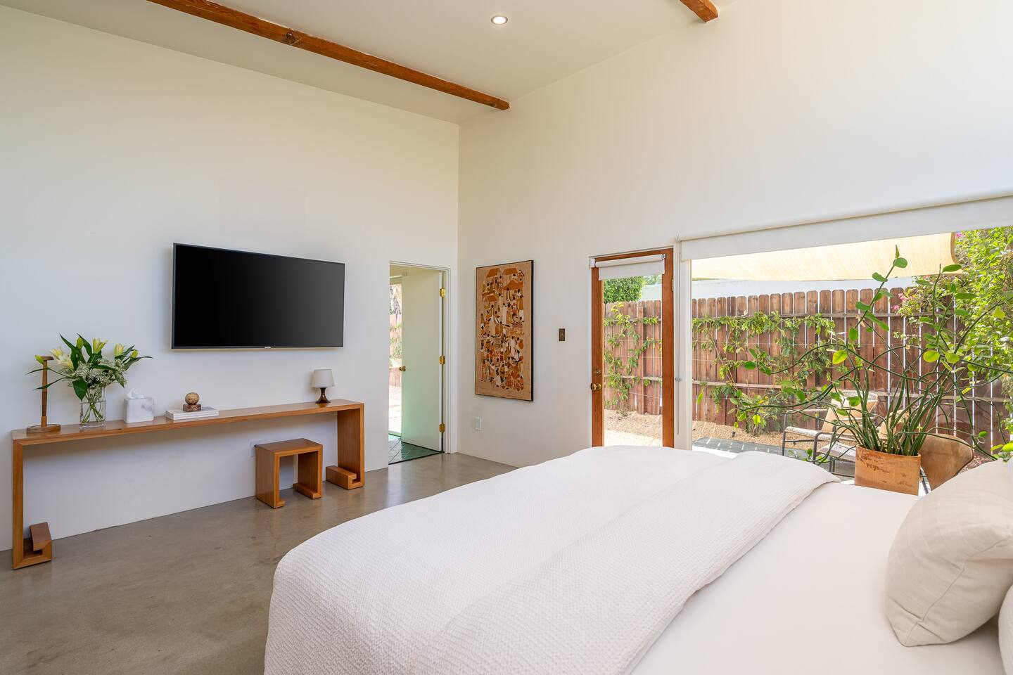 🔑 Guest Access Guests will enjoy full private access to the entire property, including: Main house with 3 king bedrooms and 2 bathrooms Detached casita with king bedroom + private bath Fully equipped kitchen, indoor dining & living spaces Laundry with washer/dryer Outdoor spaces: heated pool ($99/day), lounge seating, fire pit, BBQ grill & outdoor shower Driveway and street parking for up to 3 vehicles City ID # 004445